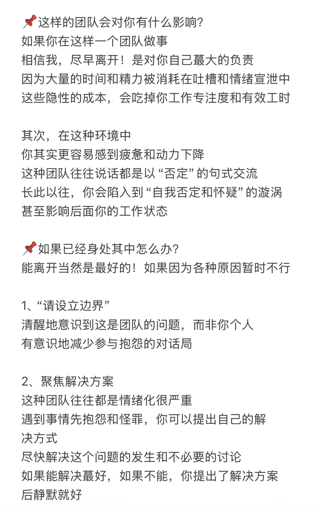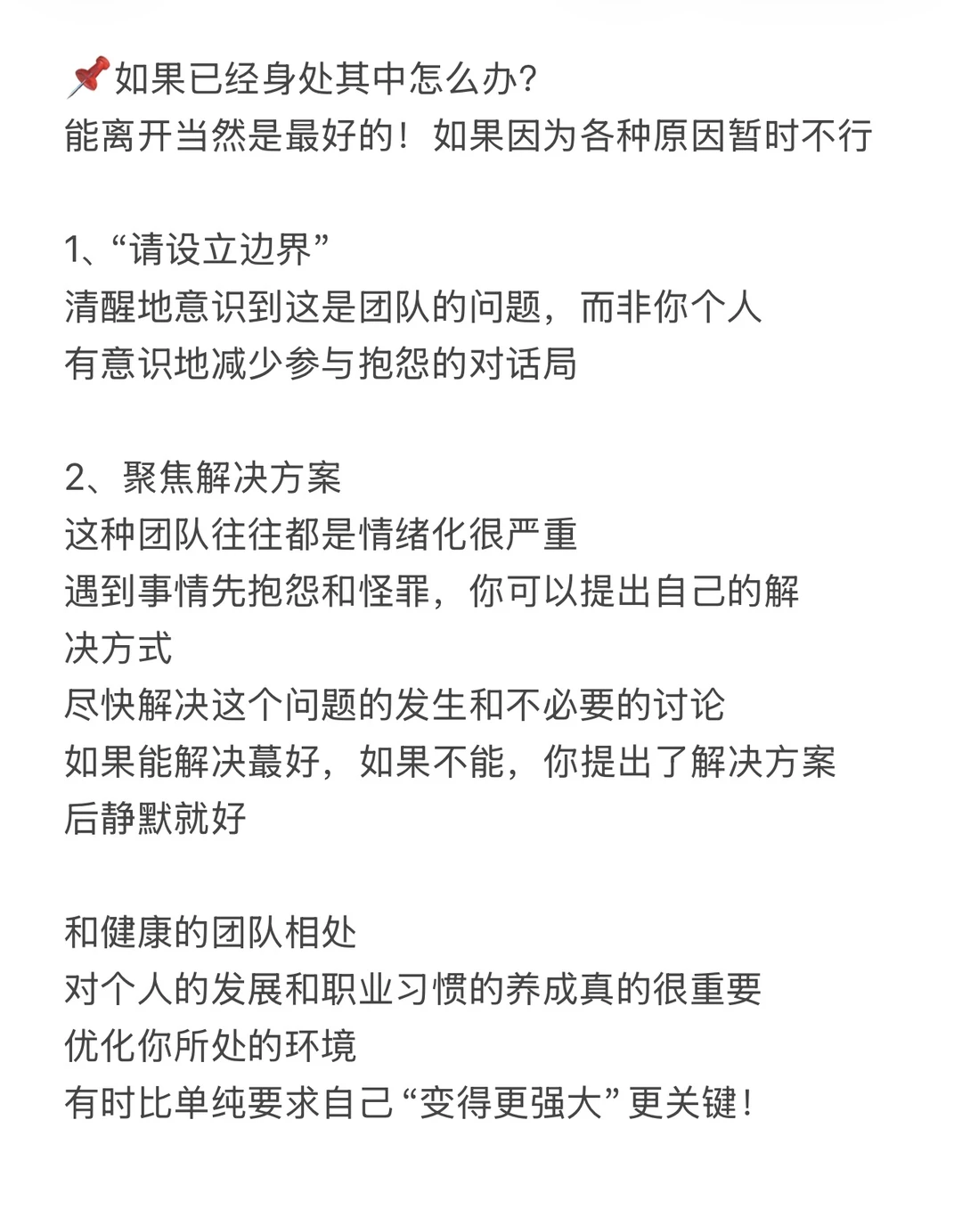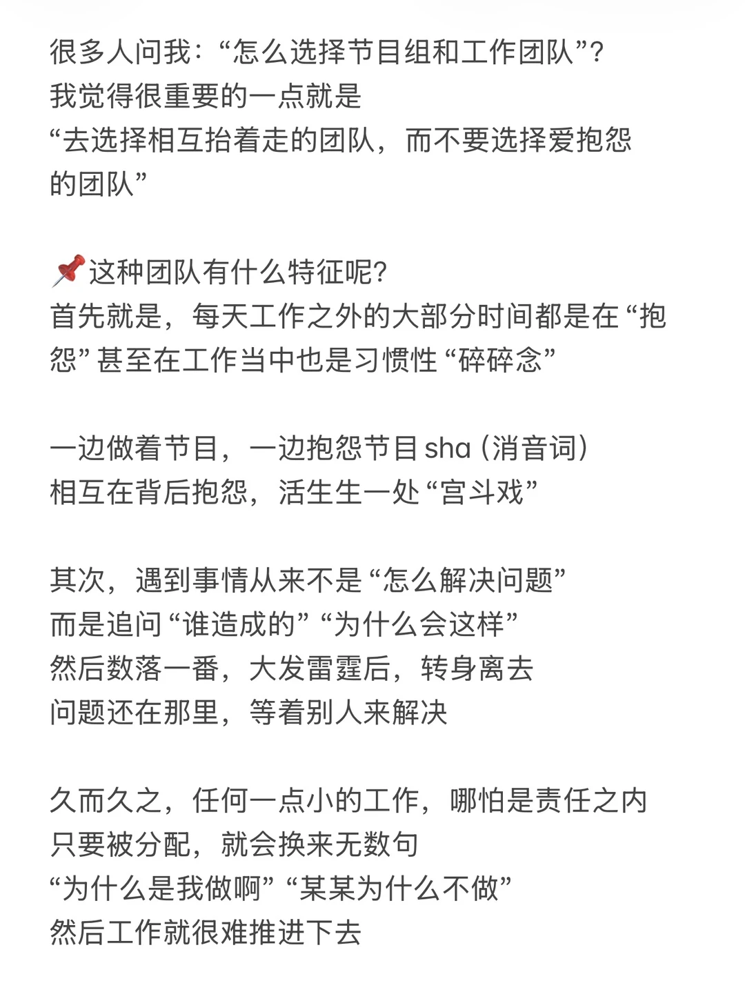 “去选择相互抬着走的团队,而不要选择爱抱怨的团队”