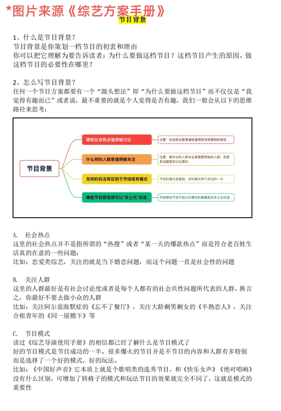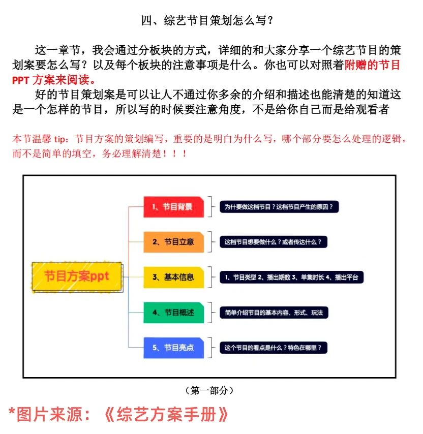 其次,对于苦于没有作品集的朋友来说,一份节目方案也能填补这个空白