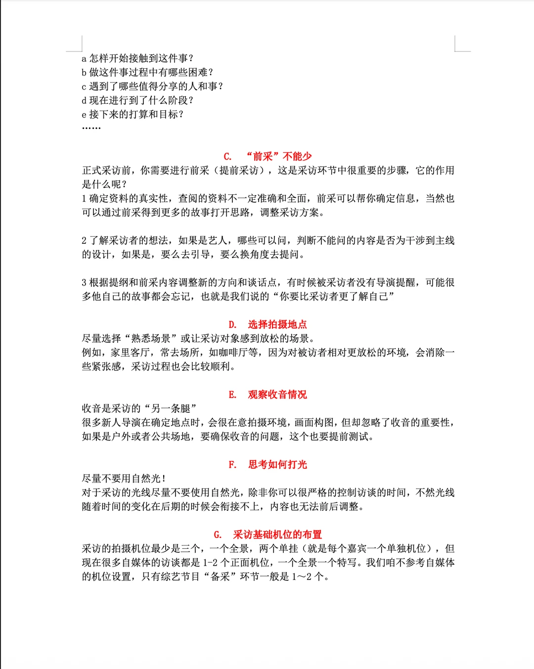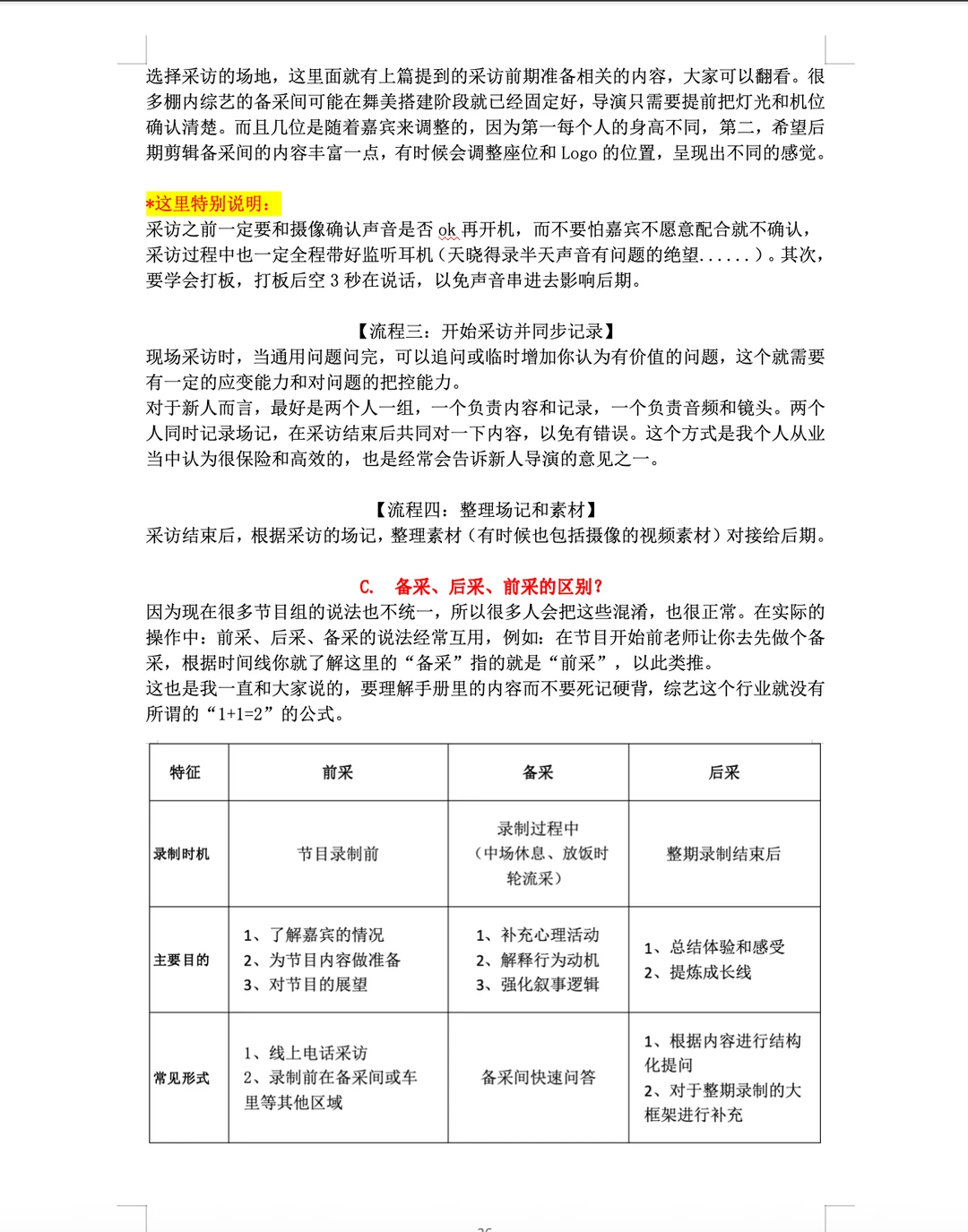 而对于什么是节目录制中的“备采”、“前采”、“后采”?采访当中又有哪些注意事项?