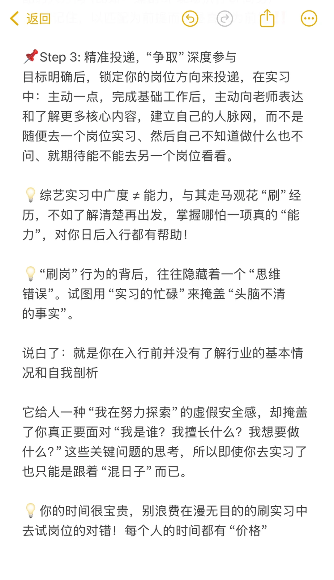 💡它给人一种“我在努力探索”的虚假安全感,却掩盖了你真正要面对“我是谁?我擅长什么?我想要做什么?”这些关键问题的思考,所以,即使你去实习了也只能是跟着“混日子”而已