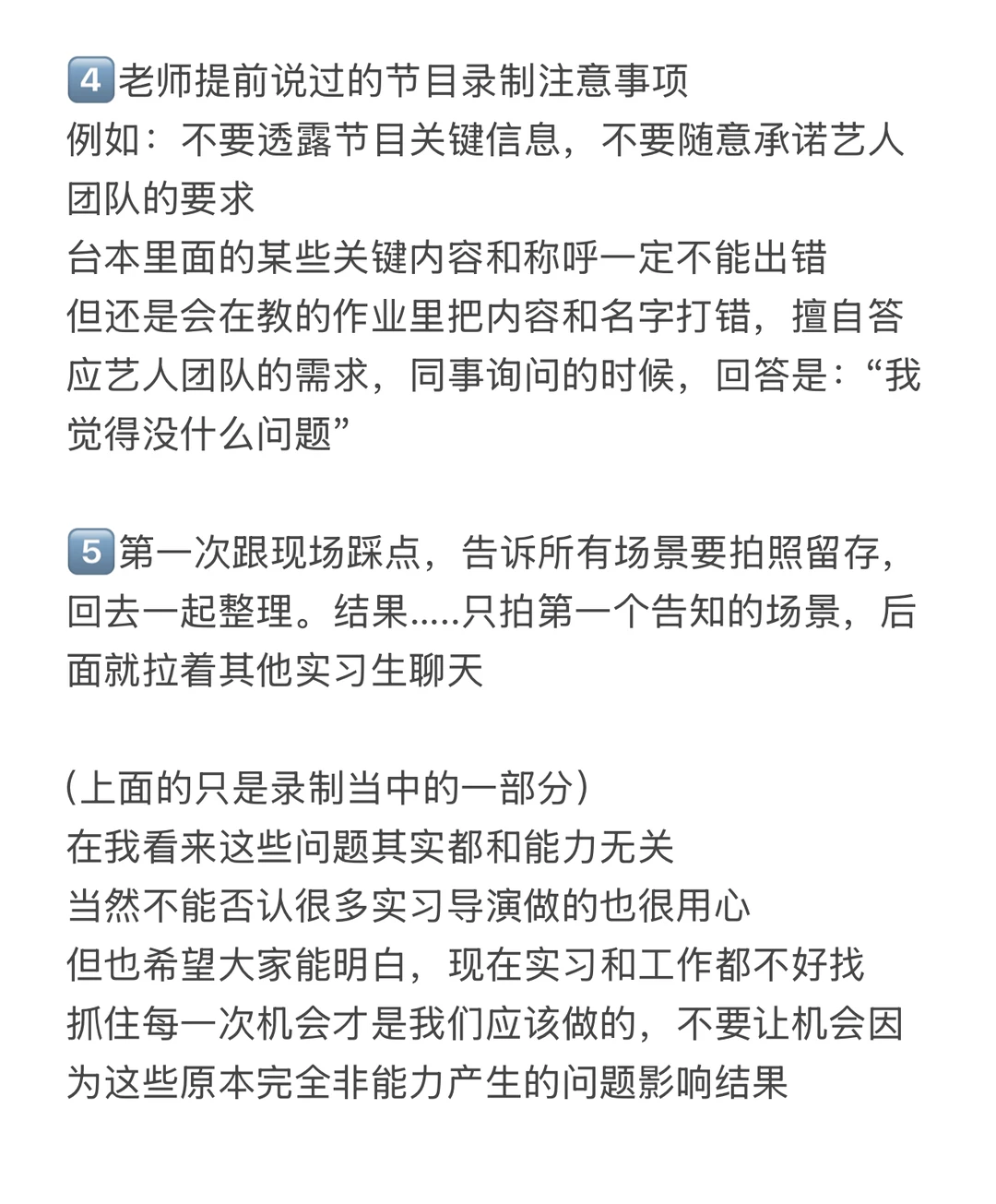 4️⃣老师提前说过的节目录制注意事项