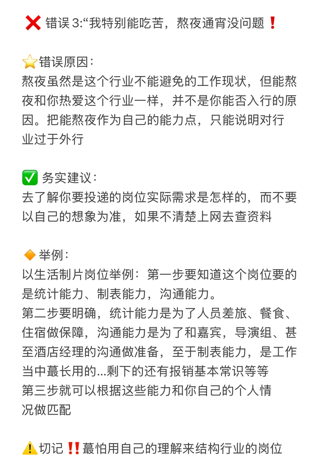 ❌ 错误3:“我特别能吃苦,熬夜通宵没问题❗️