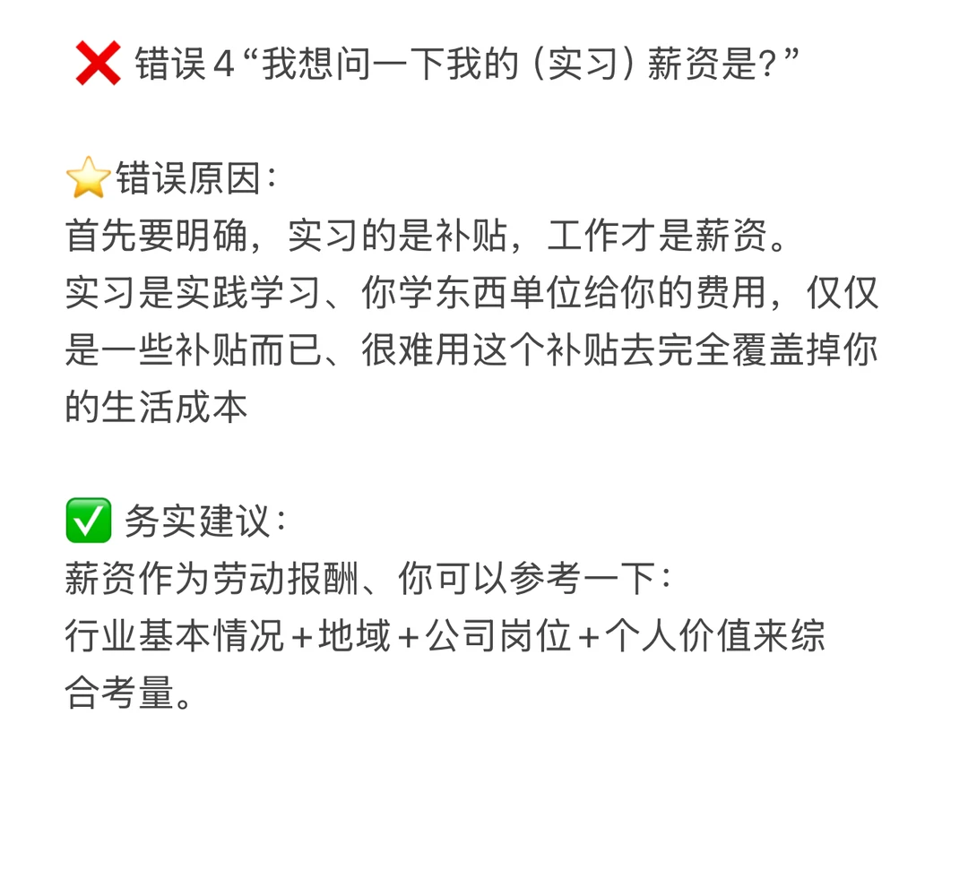 ❌ 错误4“我想问一下我的(实习)薪资是?”