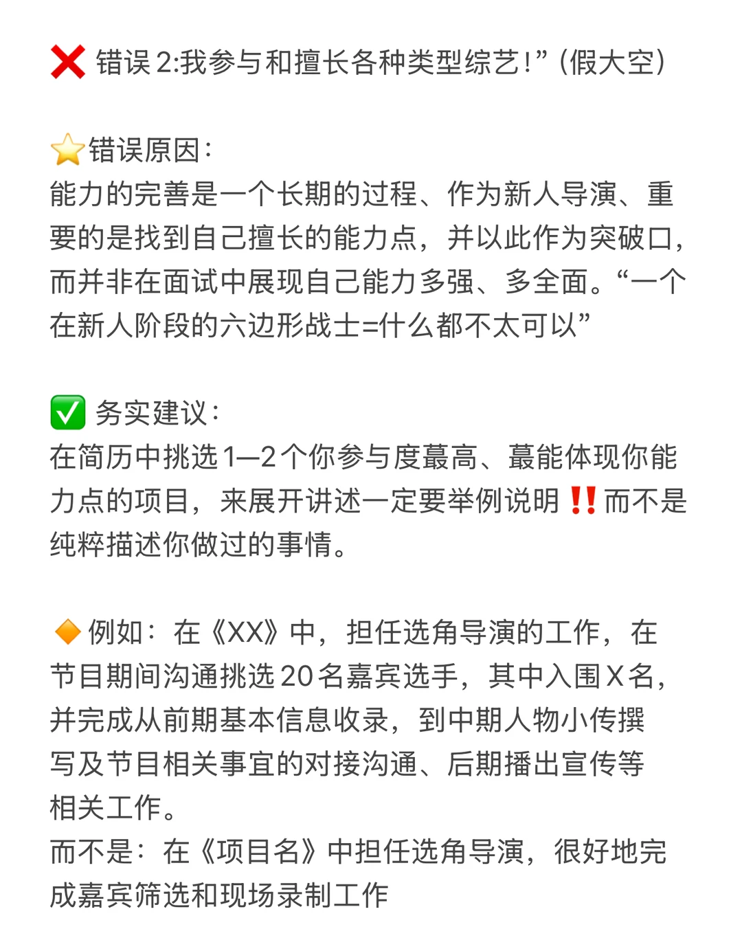 ❌ 错误2:我参与和擅长各种类型综艺!”