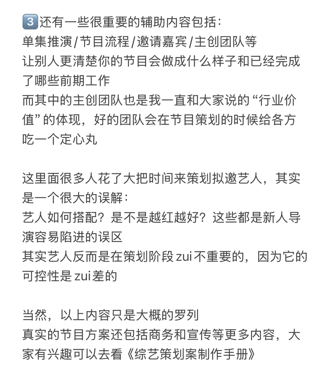 4、大家在写节目方案的时候容易犯错的通病