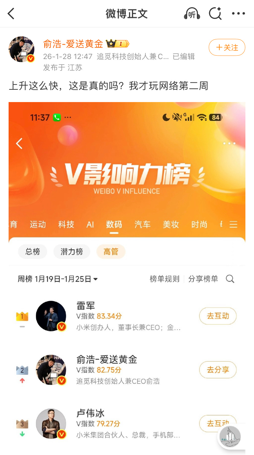 如果雷军也走俞浩路线,社媒热度估计得全球第一。