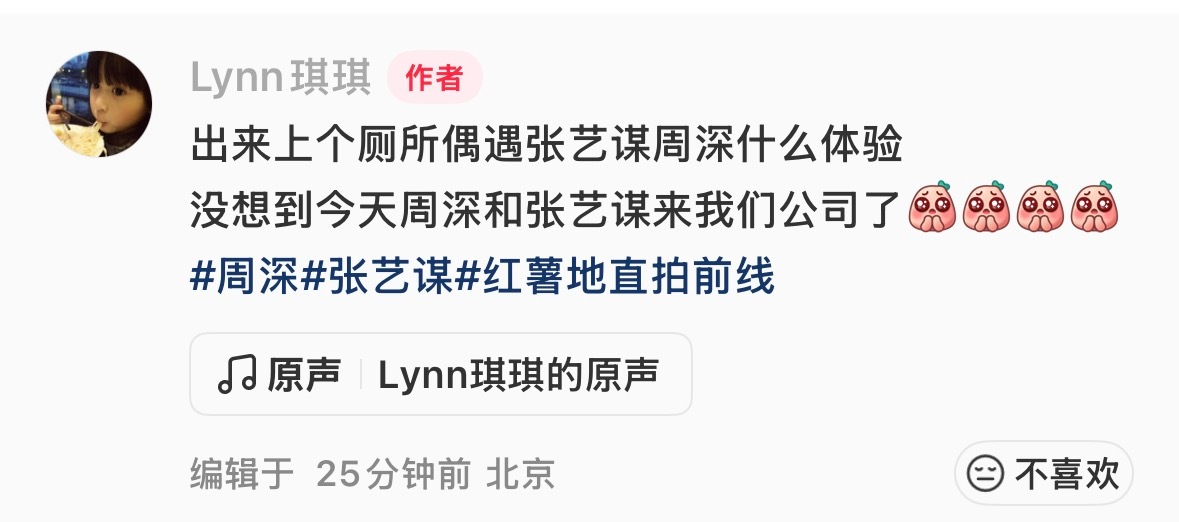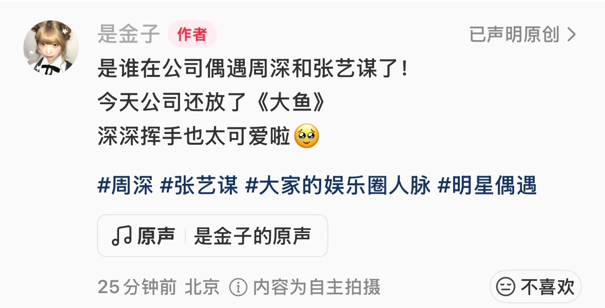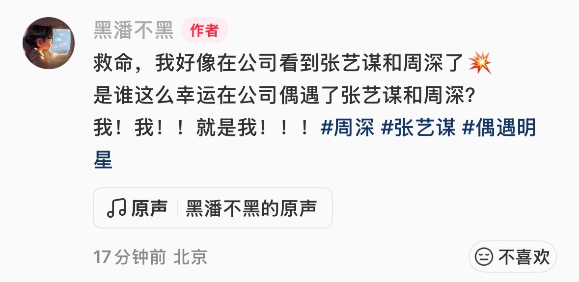 哦莫网友在阿里偶遇了张艺谋和周深期待一个合作!网友在阿里偶遇张艺谋周深