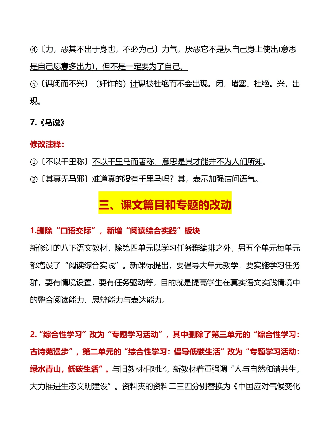 🤯相较于旧教材,新教材的课下注释修订了一些原来不合理、不好理解的部分,说法变得更加严谨,同时更正了一些字词的翻译方法。