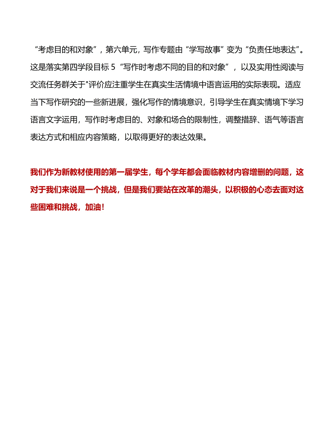 ✨ 我们作为新教材使用的第一届学生,每个学年都会面临教材内容增删的问题,这对于我们来说是一个挑战,但是我们要站在改革的潮头,以积极的心态去面对这些困难和挑战,加油!