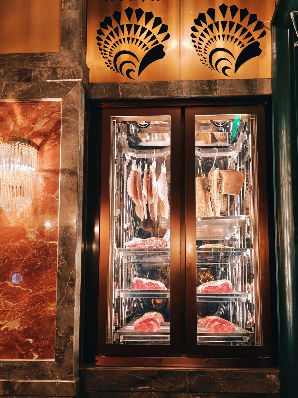 推开雕花门像闯进老巴黎!复古吊灯、酒窖陈列+熟成牛排展示柜,细节满是仪式感。户外弧形走廊超出片,大理石露台摆着烛光餐桌,傍晚暖光洒下,仿佛置身旧租界的浪漫时光🌙 !每周五周六18点还有钢琴🎹演出,琴声配美食直接拉🈵氛围!