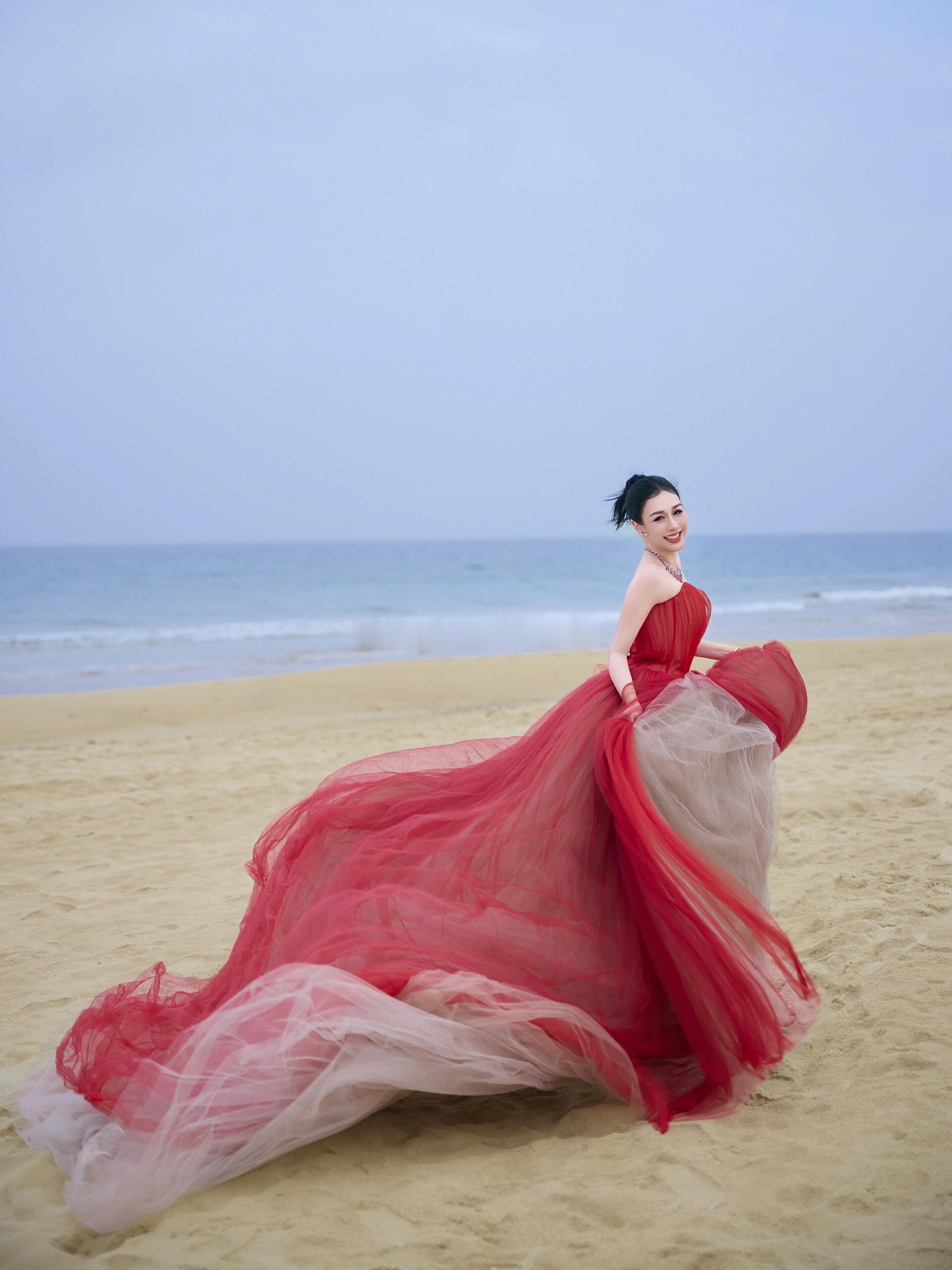 55岁的钟丽缇,牵着43岁的张伦硕,飞到土耳其坐热气球。枣红皮草一裹,照样撒娇、