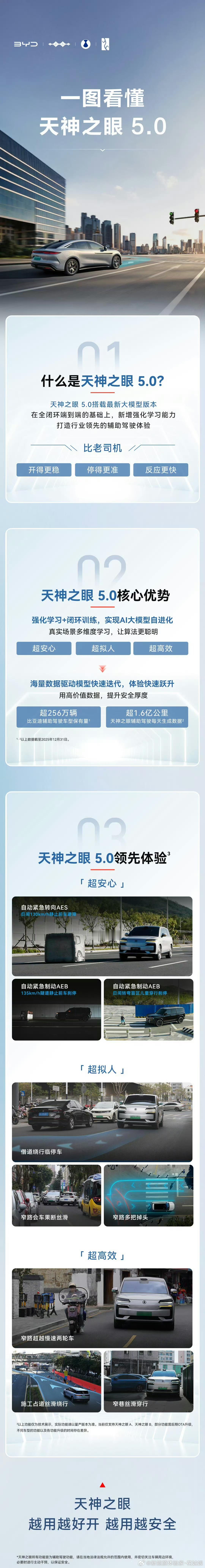 从基础辅助到AI自进化,比亚迪3年实现5代升级,靠的是百万级车型数据沉淀!天神之眼的版本迭代,其实对应着比亚迪DiPilot系统的技术演进:1. DiPilot 1.0(基础辅助驾驶阶段)核心功能:L2级基础辅助,包含ACC自适应巡航、车道偏离预警、主动刹车等。特点:以单目摄像头+毫米波雷达为基础,满足高速等简单场景的辅助需求,是早期比亚迪车型的标配。2. DiPilot 2.0(高阶辅助雏形阶段)核心功能:新增高速NOA领航辅助、自动泊车,支持上下匝道、自动超车等功能。特点:升级为三目摄像头+毫米波雷达融合方案,算力和感知能力大幅提升,开始向高阶智驾迈进。3. DiPilot 3.0(高阶智驾普及阶段)核心功能:实现无图城市NOA,支持复杂路况下的自动跟车、避障、绕行,泊车场景覆盖更全面。特点:对应“天神之眼B/C版”,部分车型搭载激光雷达,算力最高达254TOPS,成为中高端车型的标配。4. DiPilot 4.0(AI大模型进化阶段)核心功能:新增强化学习能力,实现算法自进化,支持更拟人化的驾驶决策,泊车成功率超97%。特点:对应“天神之眼5.0”的前身版本,依托超256万辆车的海量数据,让智驾体验“越用越好用”。比亚迪大v聊车新能源大牛说