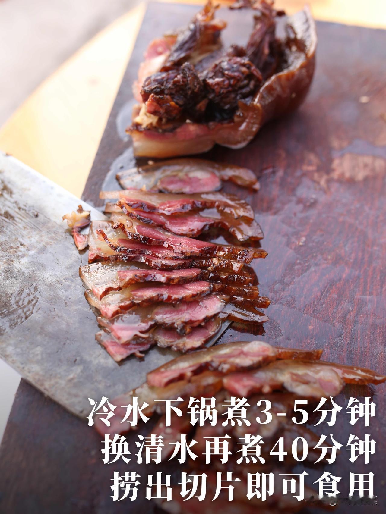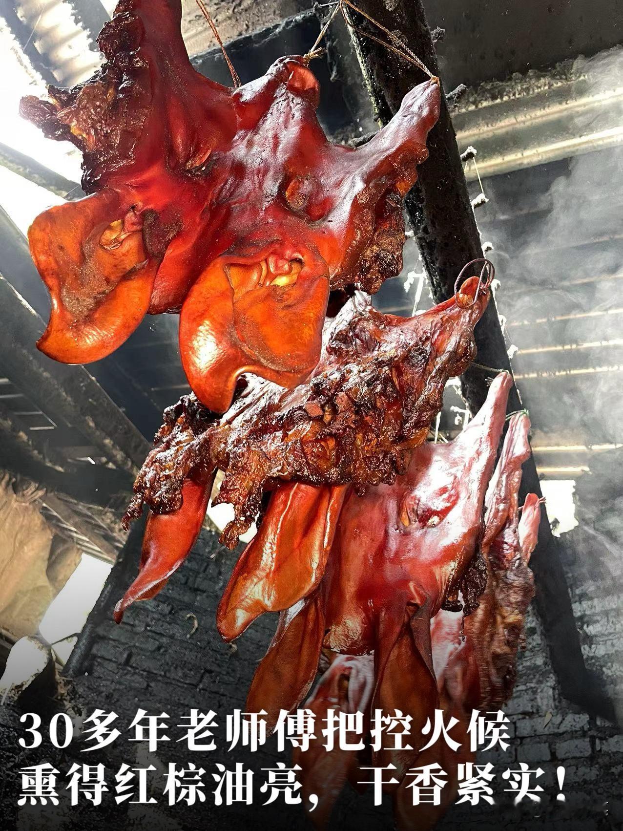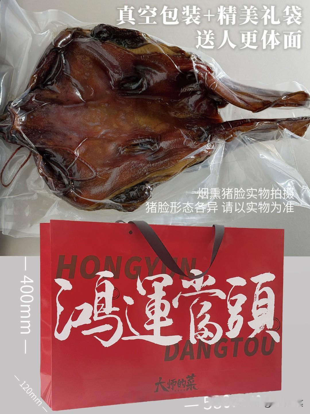 四川抢手货·烟熏猪脸肉,软糯干香,新年送礼“鸿运当头”! 过了腊八就是年!年味儿越来越浓,我们今年最后一样“重头戏”腊味——“鸿运当头”(烟熏猪脸)终于新鲜出炕[烟花][烟花] [鼓掌]整只猪脸老炕慢熏15天,肉香裹着烟火气,腊香醇厚不腻口,配料表干净,还送精美礼袋。新年提一袋,送礼自用都完美! 第一批仅限30份[比心]有需要的朋友,速速下手,手慢无! 为了让这份“鸿运当头”的好寓意更圆满,我们精心挑选体积更大的猪头,整只剔骨,【保留完整猪脸肉、猪耳朵、猪鼻子】熏干后的重量都还有3~3.5斤左右!拿来送礼才够体面! ✅地道的四川烟熏猪脸,做法非常复杂。要先将所有骨头剔除,再拔毛桩、烧皮,每个缝隙都处理干净才不会有毛腥味和异味。 ✅处理干净的整只猪脸搭配用了30多年的腌肉香辛料配方,均匀涂抹到每个角落,保证猪脸充分腌制入味,捞出晾干水汽,才能进入熏房。 ✅在农家老炕房中,用【柏树和果木烟熏15天】,由多年烟熏经验的老师傅24小时把控火候,熏到表面呈现均匀的红棕油亮,每个部位都干香紧实 ,腊香扑鼻。 烟熏猪脸下酒,给个神仙都不换![赞]煮好的猪脸肉趁热切片,猪耳脆,猪鼻韧,猪脸糯,热吃冷吃都是不一样的风味。趁热吃的猪脸肉咸淡适中,肉香浓郁,胶质软糯弹牙,老人小孩都能接受。放凉再吃,口感更有嚼劲,越嚼越香,越品越有滋味,适合下酒或当成解馋小零食。 买了烟熏猪脸的朋友,按照这个方法烹饪👇🏻: 【只能水煮,不能隔水蒸】 ①先温水洗干净,冷水下锅,水开3到5分钟后,重新换水煮。 ②重新多加水再水煮40分钟,即可切片食用或炒菜。直接食用可以蘸点辣椒面,味道更好。 如果要用来炒菜,需先按①②步骤煮好切片后再进行。炒菜请根据蔬菜品种,建议先尝下菜的咸淡再酌情放盐。 新年送礼,送的从来不止是一份礼物,更是一份团圆的心意与地道的年味。[ok]限量30份的地道四川烟熏腊猪脸,真空包装,还赠送“鸿运当头”新春礼袋,既是餐桌上的团圆硬菜,也是走亲访友的体面好礼!喜欢的朋友,抓紧时间咯~ ⚠️注意:猪脸论个卖,每个猪脸大小和重量都不一样,重量在3~3.5斤左右,介意慎拍! 【大师定制】四川正宗腊猪头肉 柴火烟熏猪脸 川味一整张猪脸年货