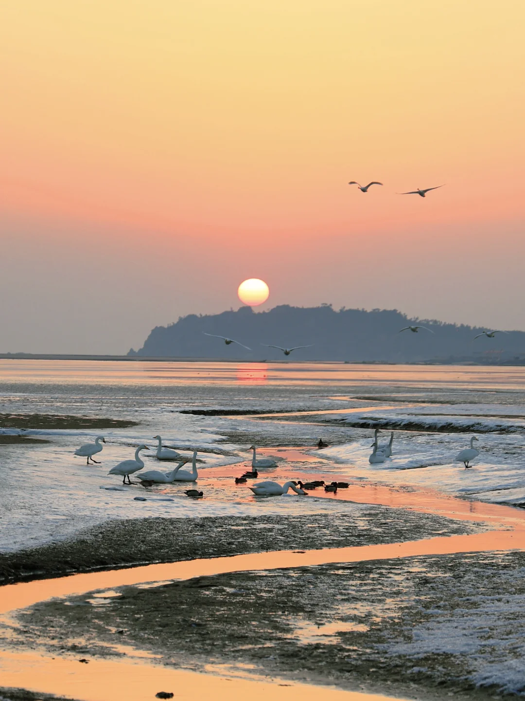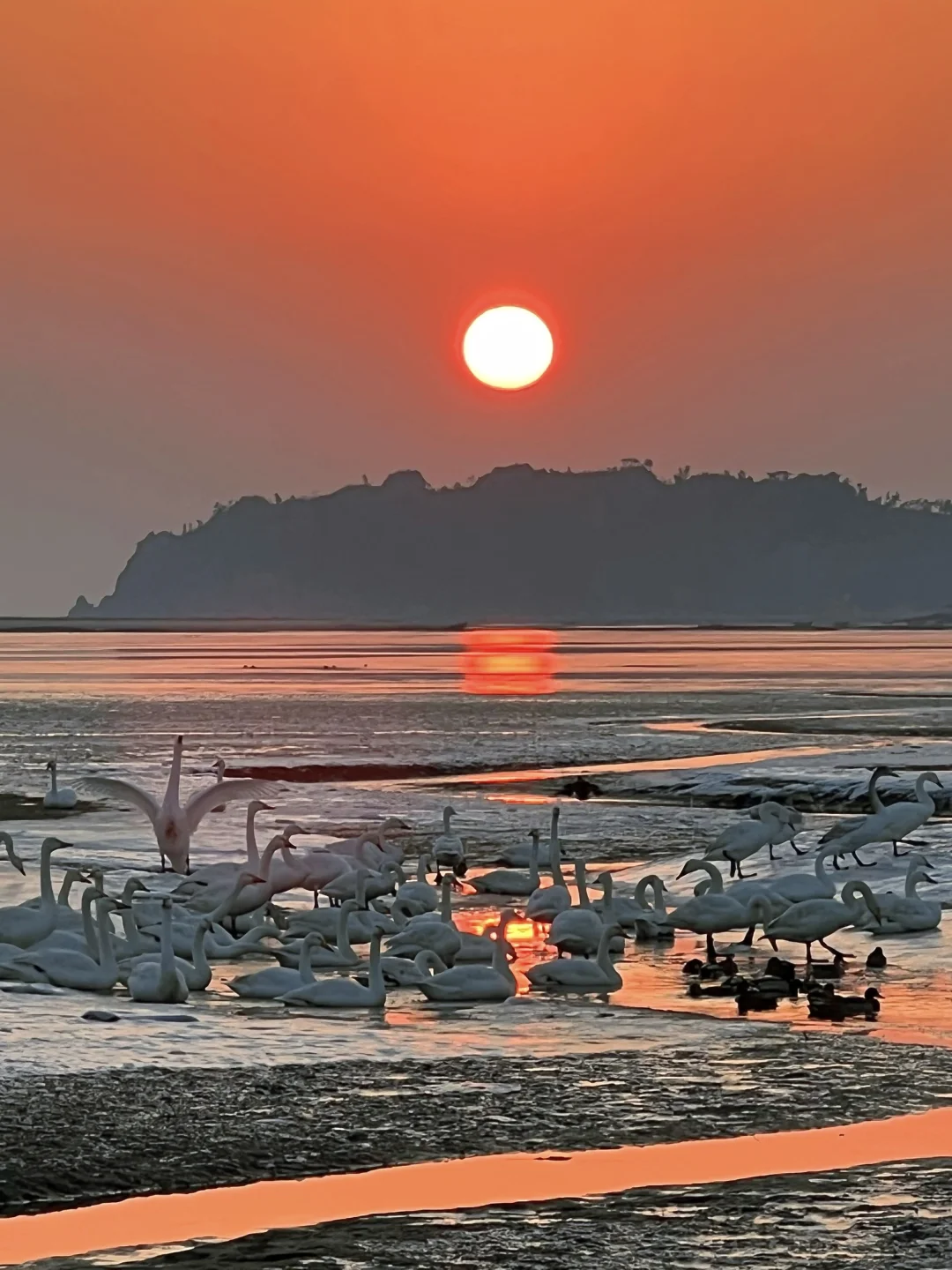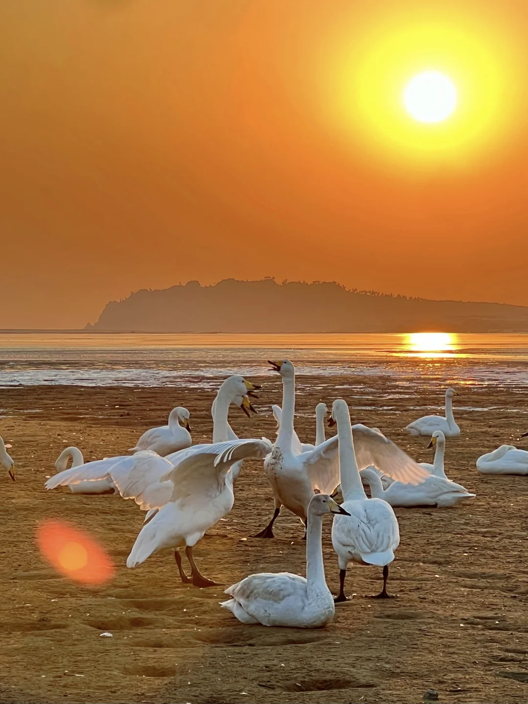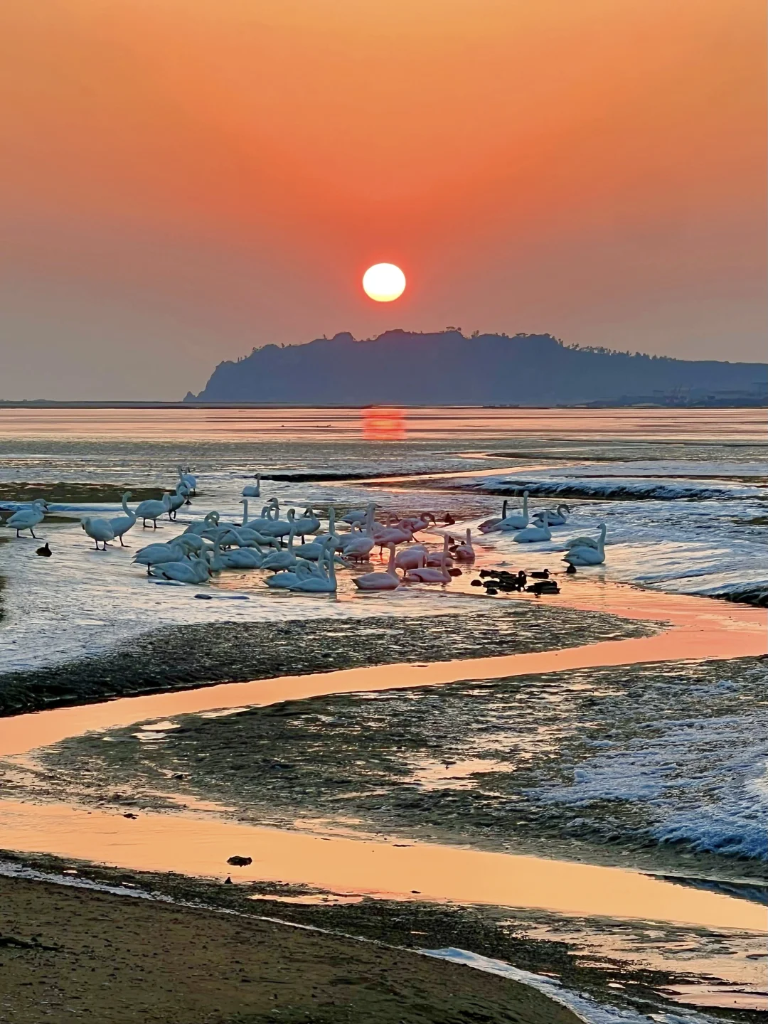 威海有很多处看天鹅的好地方 但我最喜欢🧭鸿鹄天鹅摄影区 天鹅很多拍照很出片 现场人很多,想看日出的尽量在6:30左右到达 提前一天看好天气哦