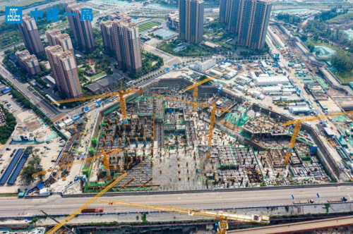 面对28米深超大基坑、地下水位高、抗浮难度大等难题,项目团队创新采用千余根后压浆钻孔灌注桩与百余根高承载力挤扩支盘桩组合工艺,构建起由桩基构成的密集支护体系,为车站植入坚实“铁脚”,提升基坑整体承载力。