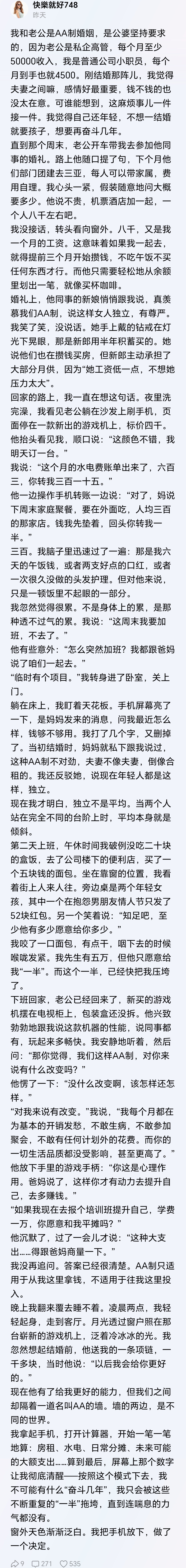 “AA制”婚姻:你以为是独立,其实是“单方面扶贫”!看完这个故事,我拳头硬了!这哪是AA制,分明是“吸血式婚姻”!老公月入5万,几千块团建眼都不眨,转头却要老婆平摊300块的家庭聚餐——你在ICU门口哭,他还在炫耀新游戏机!所谓的“独立女性”,竟成了男人逃避责任的遮羞布:你负责省钱攒钱,他负责快乐潇洒。更讽刺的是,想提升自己报个班都要“商量”,这哪是过日子?分明是把婚姻当成了“生意”,还是一方永远亏本的那种!姐们,别犹豫了,及时止损才是正解!这哪里是“奋斗几年”,这是要你“奉献一生”啊!