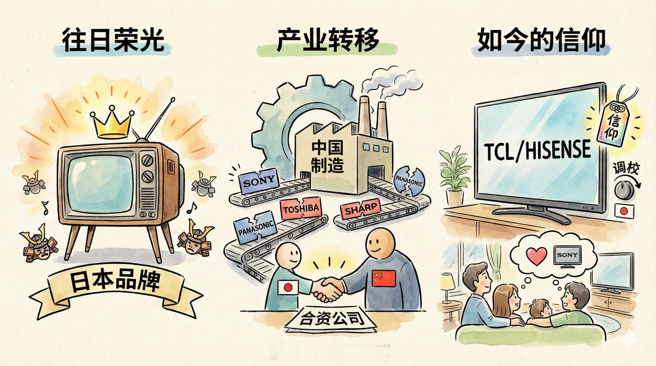 日本电视全军覆没了刚确认了下消息,索尼确实要跟TCL成立合资公司且TCL控股51%,这下日系电视最后的堡垒也没守住。回头看这几年,东芝早就是海信的,夏普归了鸿海,松下在卖场几乎绝迹。当面板和产业链都在咱们手里时,他们确实卷不动成本。以后买索尼可能真就是买个调校和信仰了。你们现在家里客厅摆的都是啥牌子?