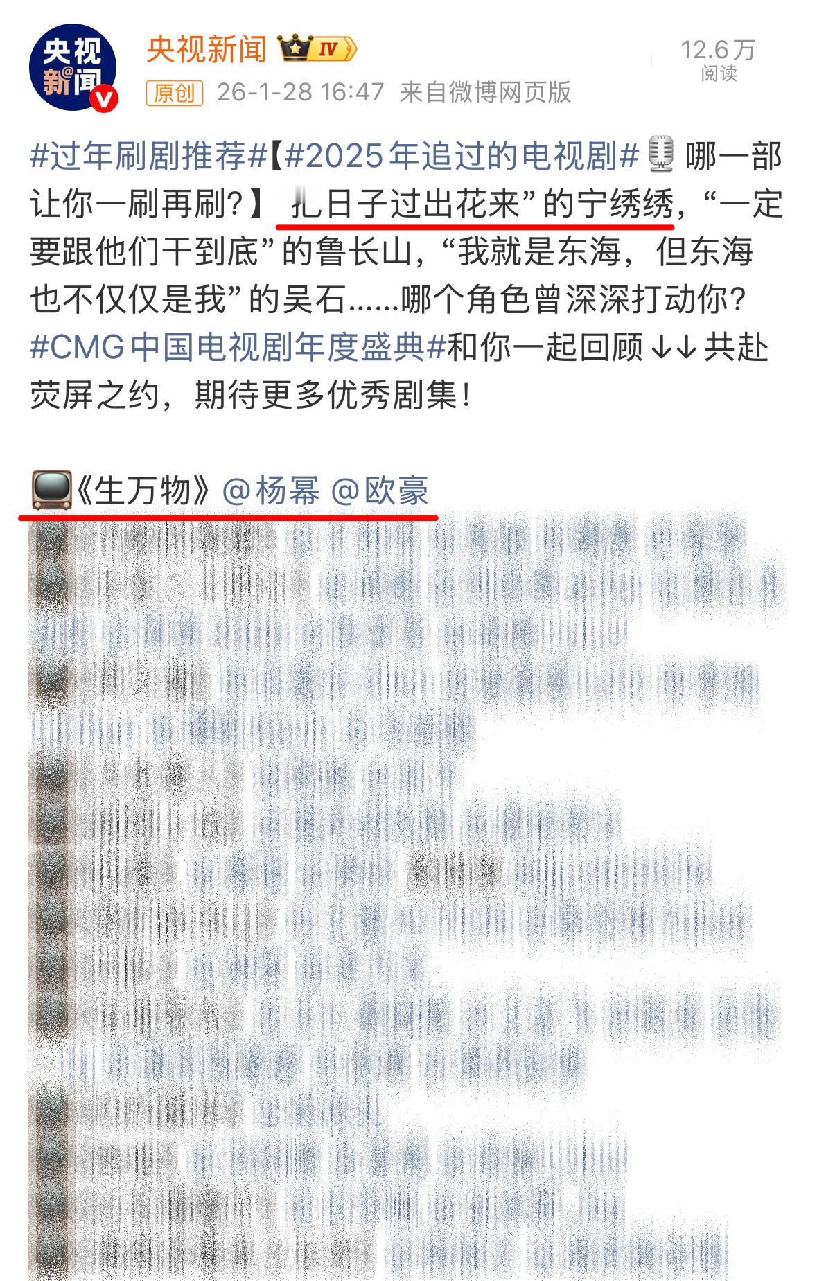 央视新闻:剧王《生万物》Top1 🏆年度金句:宁绣绣“把日子过出花来”杨幂电视