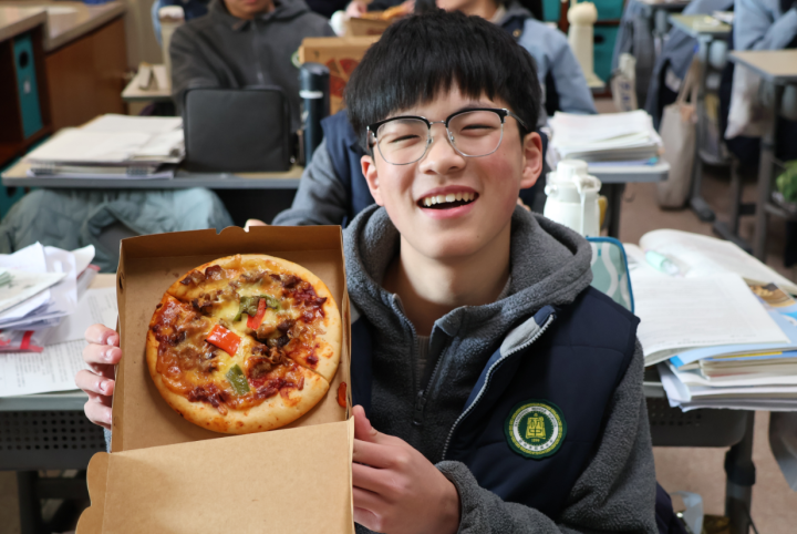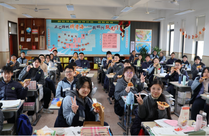 上周三到周五,正是期末复习的冲刺阶段,杭州中学的师生在课间迎来了最暖心的能量供给:学校食堂为全校2800多名师生送上定制牛肉披萨。看到披萨的那一刻,许多学生的眼睛瞬间亮了起来。