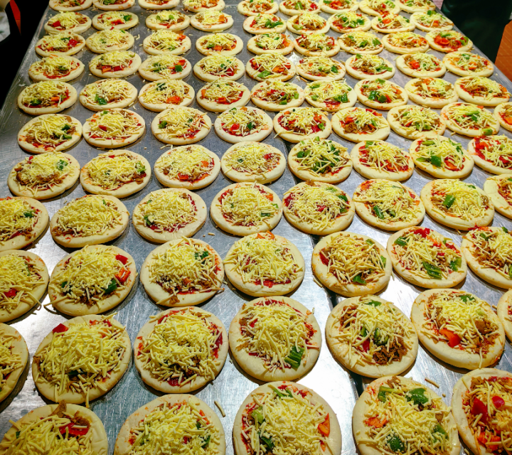 学校做的定制披萨1只7寸,2人分一只,加上储备的披萨,学校在这三天就做了1600多个披萨,给食堂的烤箱也上了前所未有的强度。