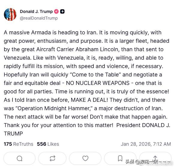 见鬼了?!特朗普天天吓唬人? 既然特一支庞大的舰队正前往伊朗,赶紧打呀!你一打预期不就兑现了吗?石油也不用涨了,黄金白银也不用涨了?你光用航空母舰来吓唬人,又不打,你看看现在的避险工具疯涨成什么样了。 现在全世界都不知道你到底打伊朗还是不打?有的人说你不敢,有的人说美国喜欢出其不意。 当然也有的人说美国第一夫人都说了,要团结,反对发生暴乱,确保局势和平,难道第一夫人的话,特朗普用心领会了? 一支庞大的舰队正前往伊朗