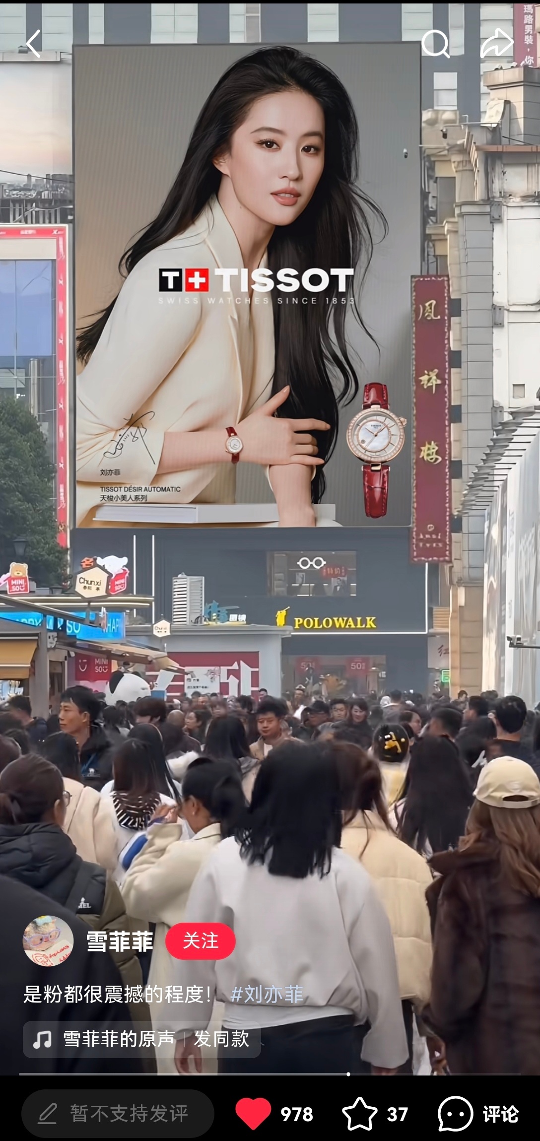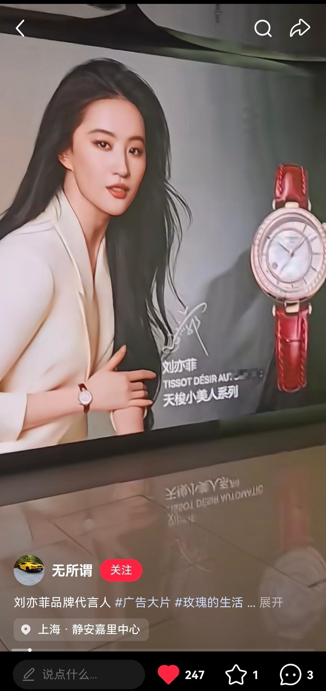 刘亦菲天梭最新地广铺起来了!代言人美得好高级,大屏更是美得视觉冲击天梭全球品牌代