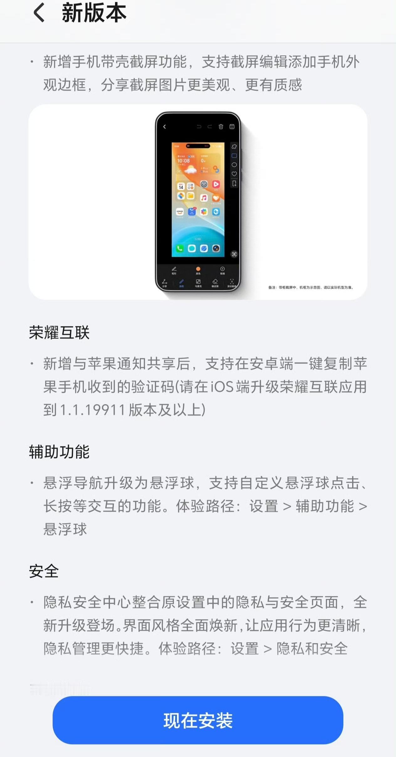 带壳截图安排上了,荣耀500系列系统大升级,一键生成带机身边框的截图,质感直接拉