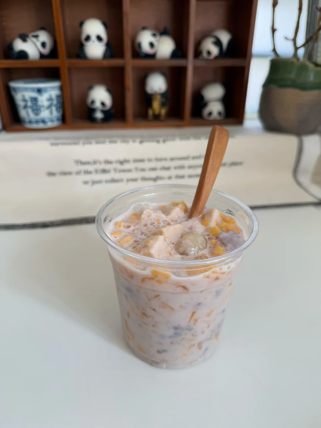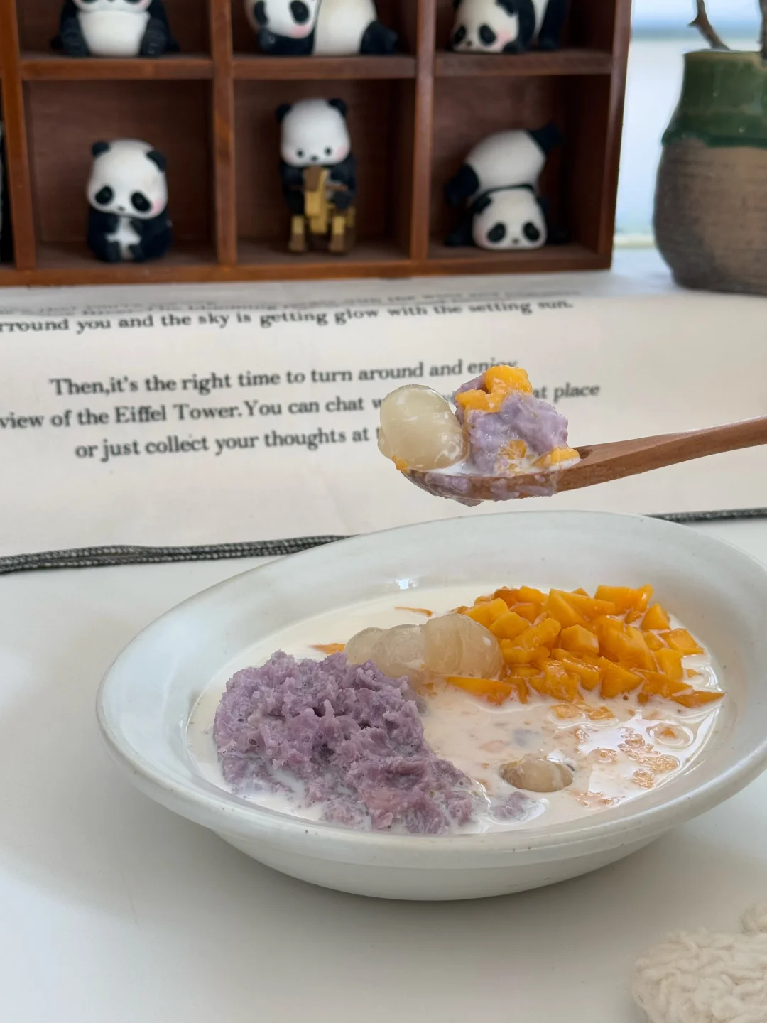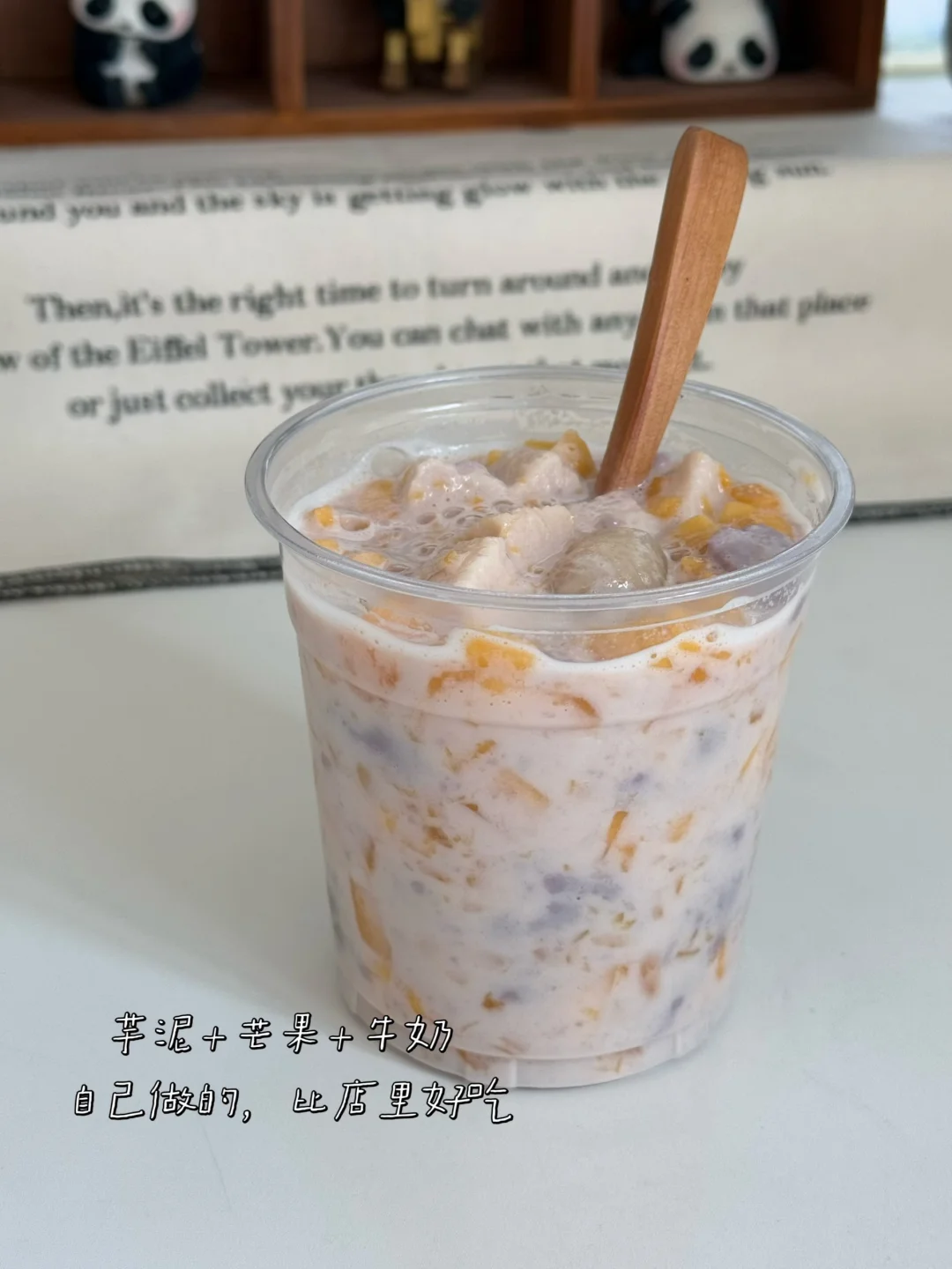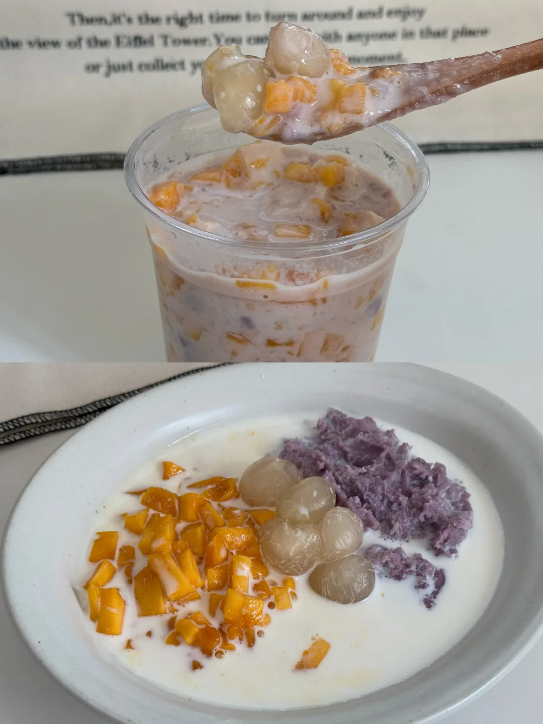 自己在家做糖水你就这么来:芒果芋泥牛奶