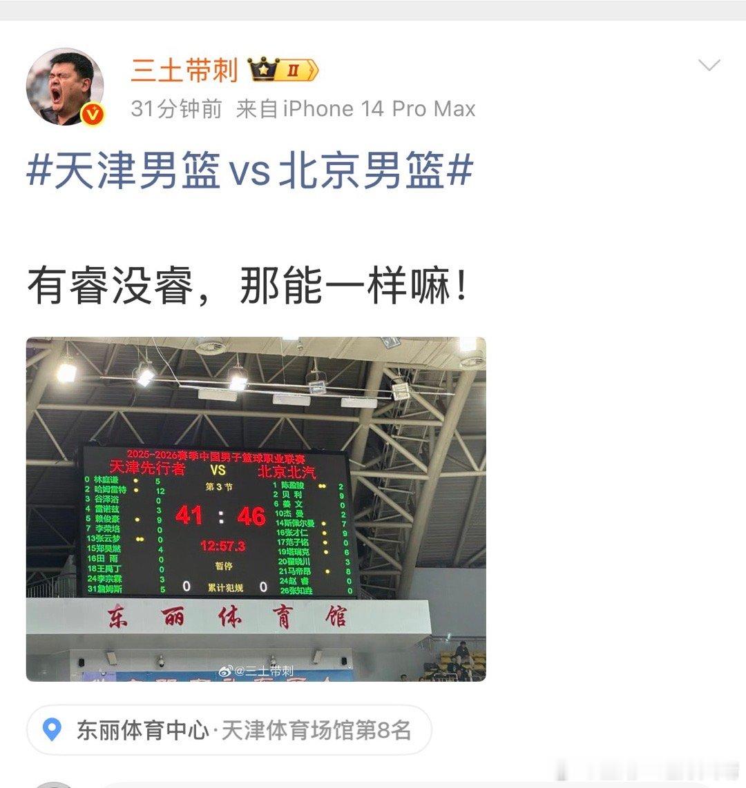 天津男篮vs北京男篮三土:有睿没睿,能一样嘛!那确实不一样。北京78:93天津大