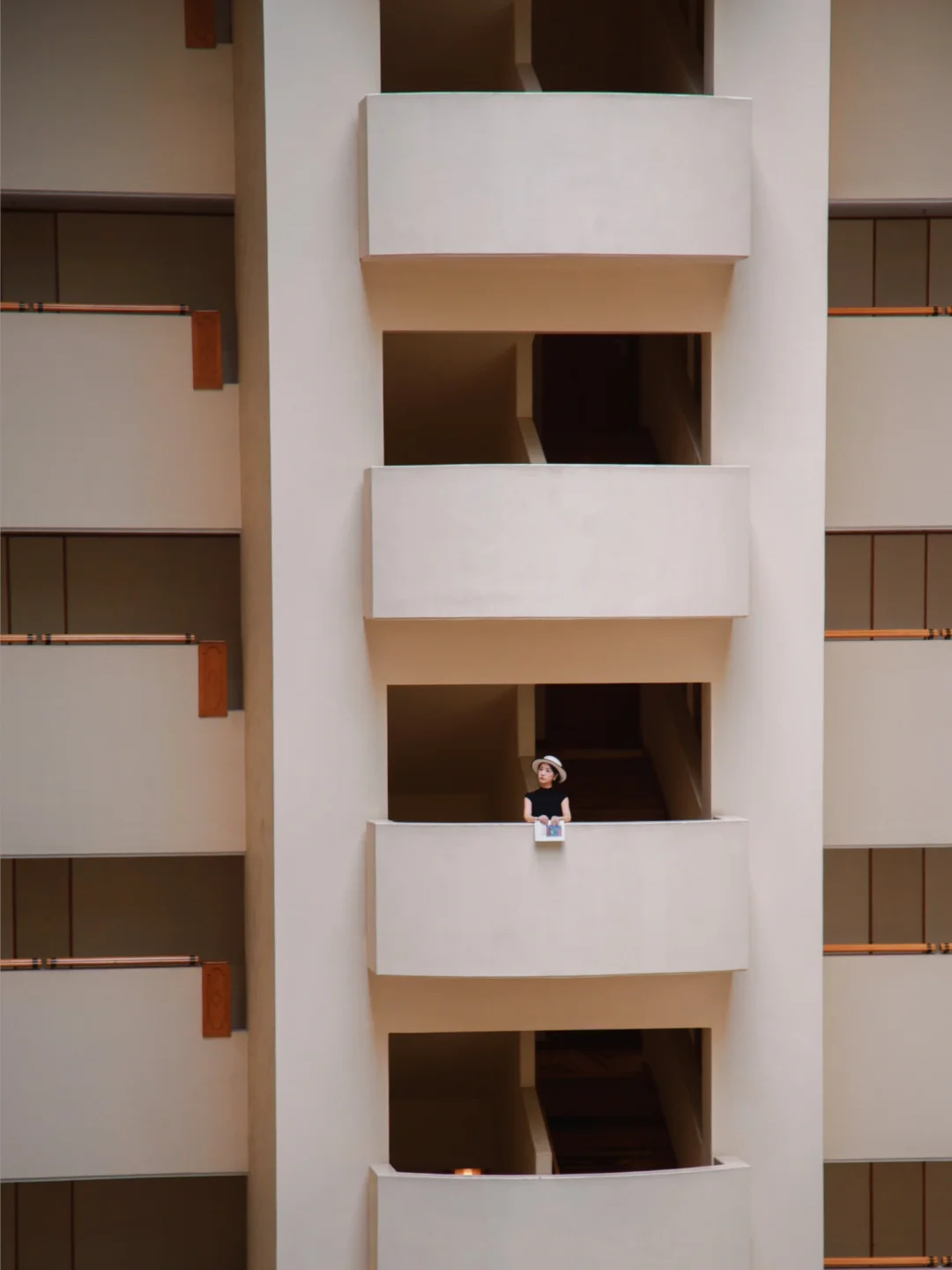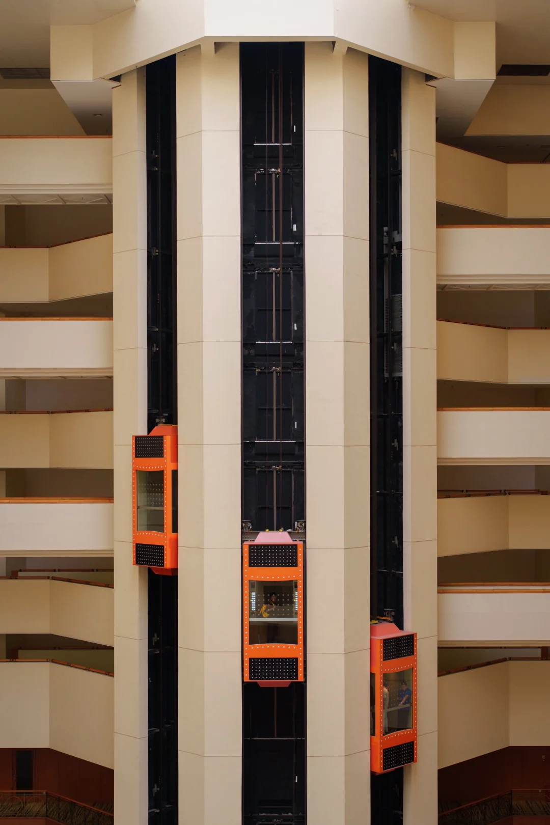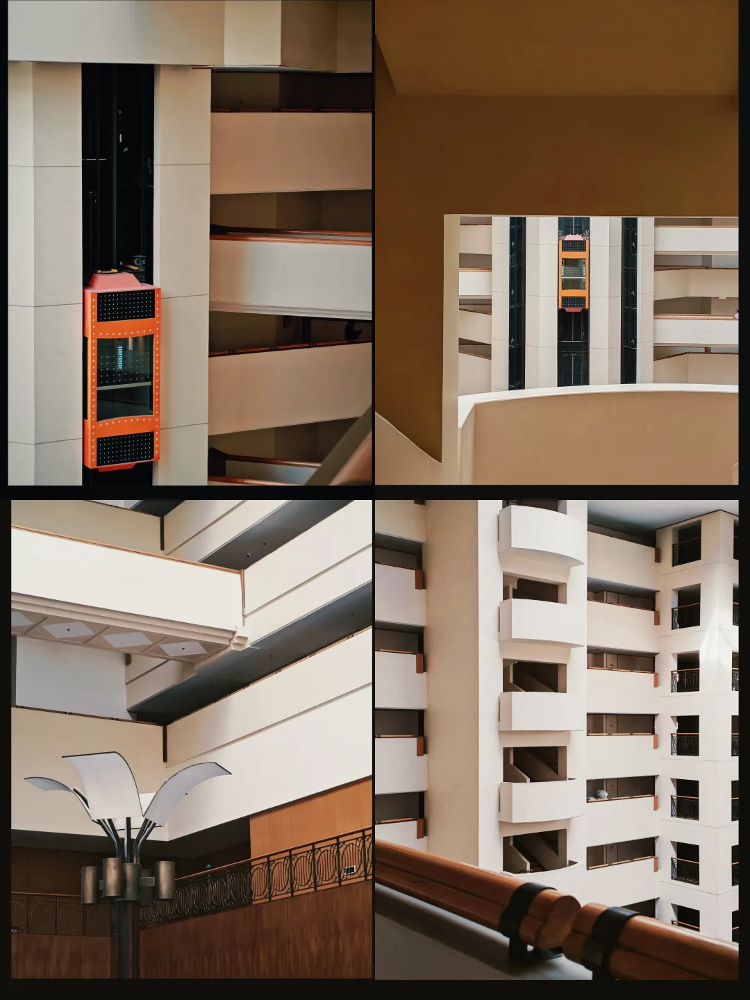 当在酒店都在返璞归真 这座酒店却在追赶未来 标志性的波特曼风格 仿佛误入了科幻电影片场 高大开阔的中庭 橙红色的观光电梯穿行其间 有阳光的清晨或下午去 光影流转仿佛在刻录一部电影