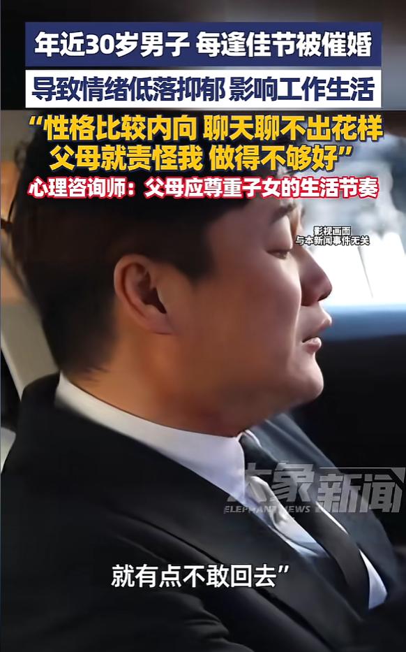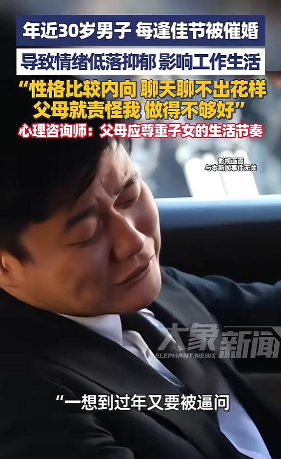 “这是何必呢!”近日,江苏淮安,一男子性格内向,不擅长和女孩子聊天,父母便责怪他做的不够好,眼看男子即将30岁,每到过年,他都被频繁催婚,所以男子现在精神压力特别大,甚至患上抑郁,严重影响了自己的工作和生活。网友:不结婚不行吗? 最近江苏淮安一件事,戳中了很多单身年轻人的心声,有个快30岁的男子,性格本来就内向,不擅长跟女孩子聊天,没什么恋爱经验,他的父母不仅不理解,还总责怪他做得不够好,觉得是他不上心、不努力。 眼看男子就要迈入30岁的门槛,每到过年,催婚就成了家里的重头戏。 亲戚朋友聚在一起,没人问他工作累不累、过得开不开心,满脑子都是“找对象了吗”“什么时候结婚”“再不找就晚了”,父母更是天天在他耳边念叨,要么拿他跟别人家的孩子比,要么就唉声叹气,说自己夜里都睡不着觉,就操心他的终身大事。 久而久之,这个男子的精神压力越来越大,白天上班提不起精神,注意力不集中,晚上失眠多梦,情绪也变得越来越低落,到最后直接患上了抑郁,工作和生活都受到了严重影响,甚至一想到过年要回家,就满心恐惧,连家都不敢回。 其实这事说起来,没有谁是绝对的错,但就是这份错位的关心,把好好的一个人压得喘不过气。 男子内向的性格,不是他能轻易改变的,不擅长跟女孩子聊天,也不代表他不想找对象、不想结婚,可能只是需要更多的时间,需要一个合适的契机。 而父母的初衷,确实是为了孩子好,担心他年纪大了不好找伴侣,担心他以后老了没人陪伴、没人照顾,这份焦虑能理解。 可他们忘了,催婚也要讲究方式,一味地责怪、施压,只会适得其反。 本来男子就因为自己内向、不会聊天而自卑,父母的指责只会加重他的心理负担,让他更不敢去接触异性,陷入恶性循环。 现在很多年轻人,都面临着这样的困境,尤其是快到30岁,好像就被贴上了“大龄未婚”的标签,不管自己过得好不好,不管有没有自己的规划,都会被催着结婚。 说白了,婚姻从来都不是一项必须按时完成的任务,也不是衡量人生成败的标准,每个人都有自己的生活节奏。 有心理咨询师也说过,催婚背后,其实是父母的焦虑和年轻人的自主价值观发生了冲突,粗暴的催促和批评,很容易引发年轻人的反感和情绪问题。 父母真正的关爱,不是逼着孩子随便找个人结婚,而是尊重他的选择,理解他的难处,多听听他的想法,用陪伴和支持代替说教和施压,别让团圆的佳节,变成孩子的心理负担。 这事传到网上后,网友们也炸开了锅,其中最多的声音就是“不结婚不行吗?” 有人说,低质量的婚姻,还不如高质量的单身;也有人分享自己的经历,说为了躲催婚,过年都不敢回家。 其实大家不是排斥婚姻,只是不想为了结婚而结婚,不想将就着过一辈子。 这个淮安男子的遭遇,其实是当代很多单身青年的缩影,他们一边要扛着工作的压力,一边要承受家里的催婚压力,夹在中间进退两难。 希望更多的父母能明白,孩子的幸福,从来都不是靠婚姻定义的,尊重他的节奏,给他一点时间,才是真正的为他好。 对此您有什么不同的看法,可以在评论区留言讨论!!! 信息来源:《江苏淮安,年近30岁男子每逢佳节被催婚,导致情绪低落抑郁影响工作生活,“性格比较内向聊天聊不出花样,父母就责怪我做得不够好”,心理咨询师:父母应尊重子女的生活节奏》大象新闻