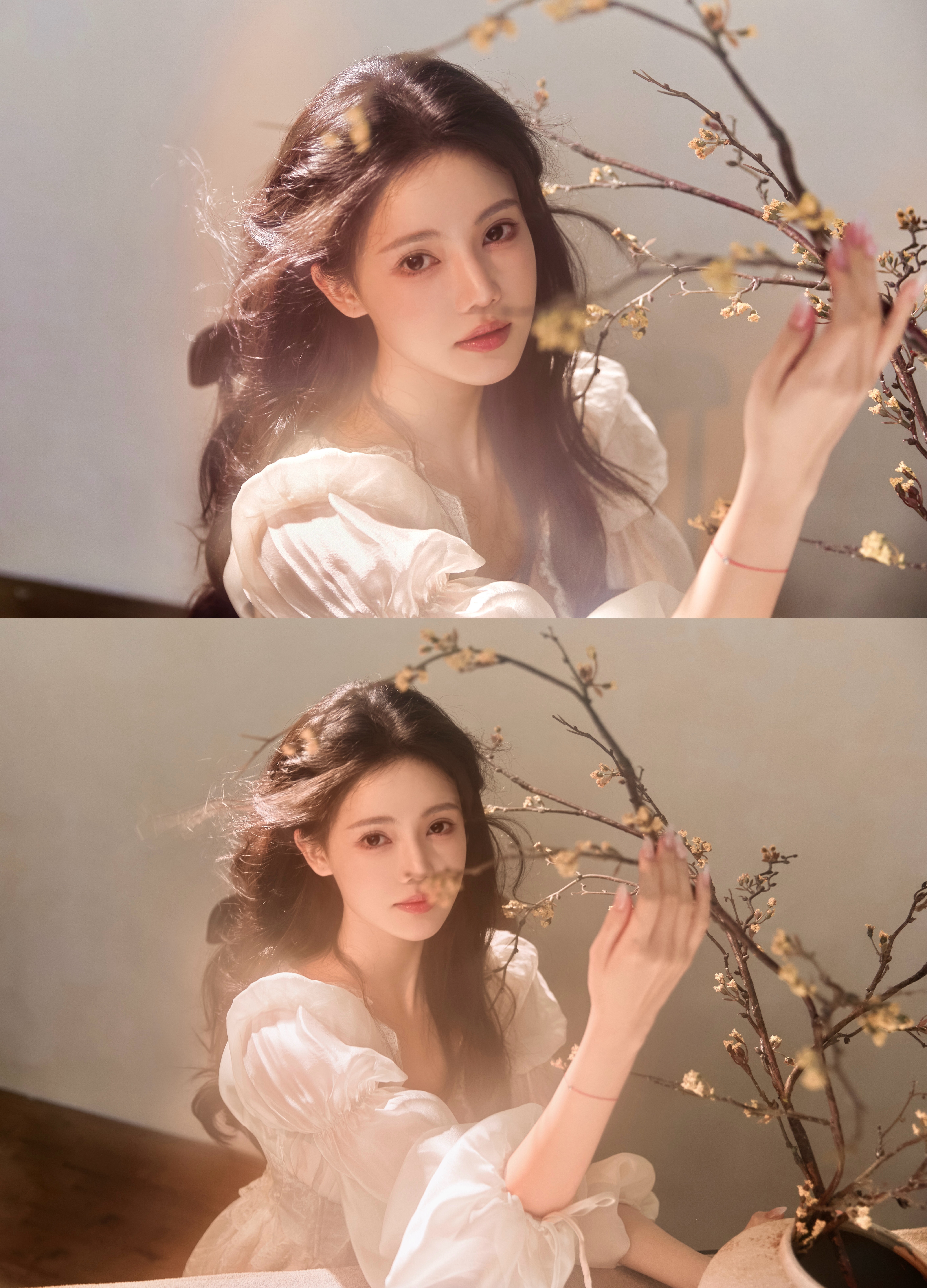 美图欣赏,看图写诗《巷陌春晴》七言绝句:浅衫曳影过春堤,柳色如烟映水西