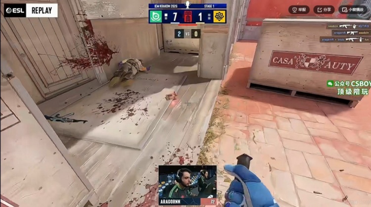 第七局长枪局,s1mple还是拿到了防守狙,BC直接一波4A站位,latto在锅炉房先行白给!s1mple放炮但是electroNic双杀顶住!BC光速绕后打掉带包的T,aragronN躲在教堂成功刀了dumau一个大背身!6-1!