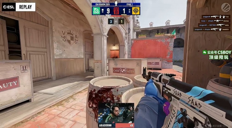 最后一局aragornN香蕉道沙袋再拿双杀,s1mple大狙也支援到位!4V2的BC优势局!electroNic锅炉房反摸打出1换1,n1ssim的1V3残局毫无办法!BC上半场11-1的巨大优势领先啊!