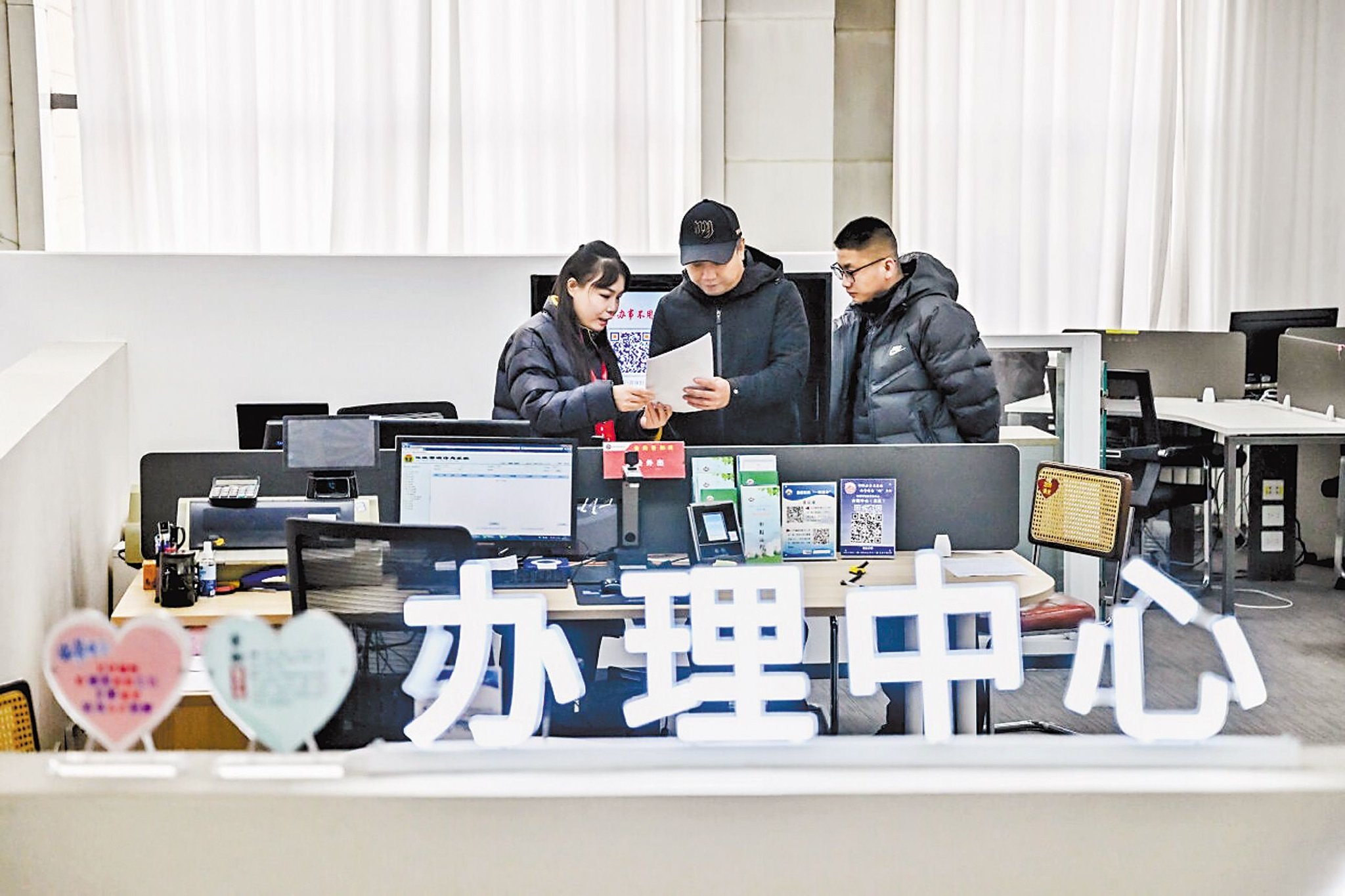 1月23日,邯郸市政务服务中心工作人员(左一)在为市民办理业务。本报记者田明摄