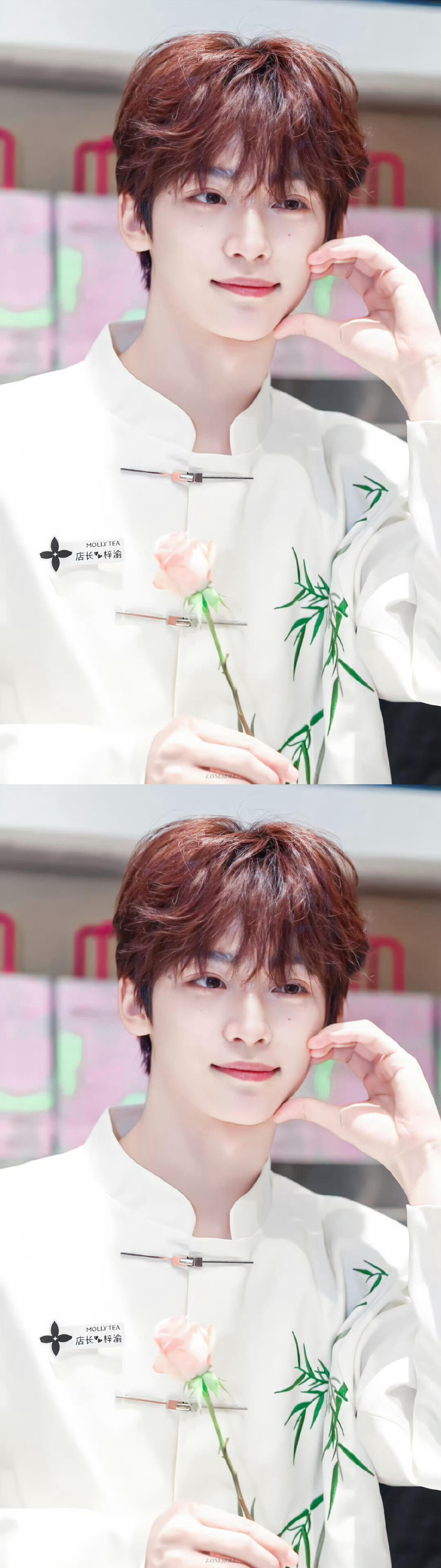 梓渝换了新发色谁看茉莉奶白不心动 白月光级别 小梓渝真的是一块香香软软的小蛋糕🧁郑朋真的很会很浪漫啊 期待厦门演唱会惊喜