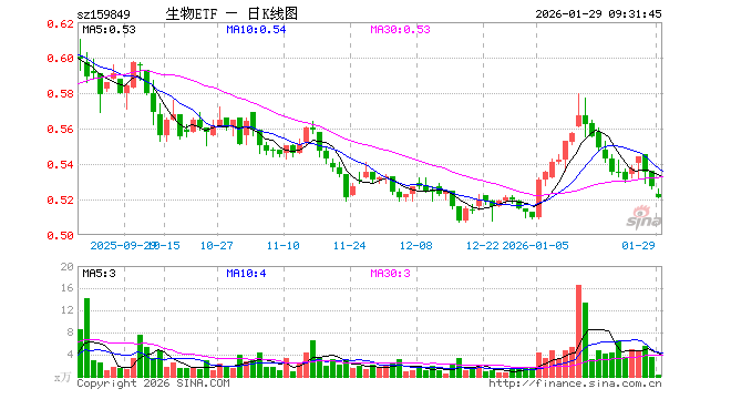 1月29日,生物科技指数ETF(159849)开盘跌0.76%,报0.523元。生物科技指数ETF(159849)重仓股方面,药明康德开盘跌0.08%,恒瑞医药跌0.35%,迈瑞医疗涨0.01%,复星医药跌0.33%,上海莱士跌0.31%,百济神州涨0.10%,长春高新涨0.00%,康龙化成跌0.47%,泰格医药跌0.54%,甘李药业跌0.46%。