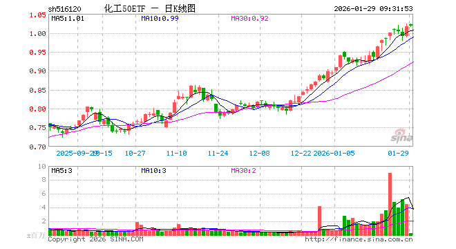 化工50ETF(516120)业绩比较基准为中证细分化工产业主题指数收益率,管理人为富国基金管理有限公司,基金经理为殷钦怡,成立(2021-03-01)以来回报为1.14%,近一个月回报为13.79%。