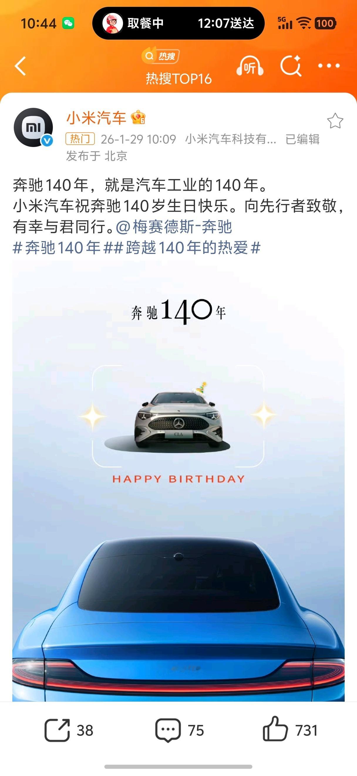 奔驰140年生日快乐奔驰140年,小米、理想、凯迪拉克纷纷送上祝福,大格局厂商