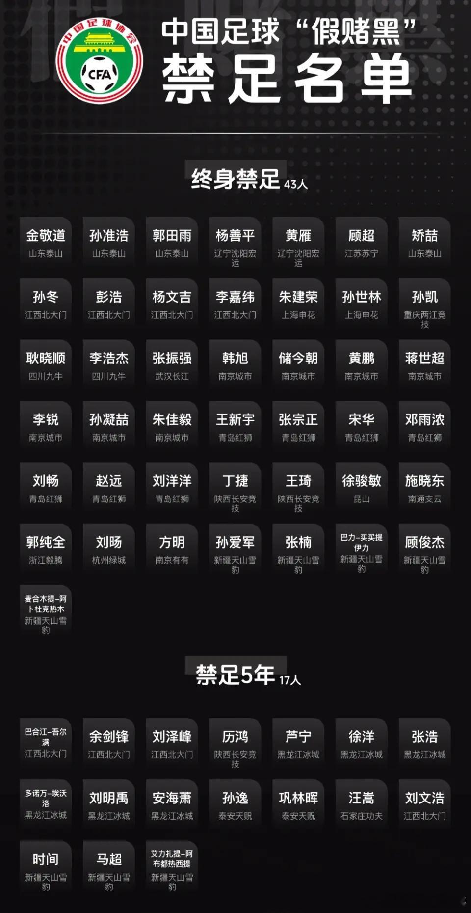 中国足球国家队中国足协 足球行业“假赌黑”专项整治行动的相关会议,于29日上午10点在北京召开。这也是时隔16个月后,第2次举办关于中国足球职业联赛“假赌黑”问题专项整治行动的新闻发布会。2024年9月10日,国家体育总局、公安部联合召开了首次足球职业联赛“假赌黑”问题专项整治行动新闻发布会。针对足球领域严重假球、赌球、黑哨问题,体育总局、公安部、中国足协联合展开了足球行业的专项治理行动。当时,中国足协公布首批禁足处罚名单,多达60人被罚,其中金敬道、孙准浩、郭田雨,顾超等43人被处罚终身禁足,而老将汪嵩等17人则被禁足5年。而这次发布会,有可能会向公布外界关注的第2份禁足名单。此前根据多方媒体人消息,很可能会有涉及假赌黑的俱乐部,在此次事件中受到处罚。对此,媒体人苗原点评道:“如果这次罚了中超俱乐部和第二批名单上的所有人,再把海外大批中国足球大佬都给点了,我觉得中国足球就真的要好起来了。”