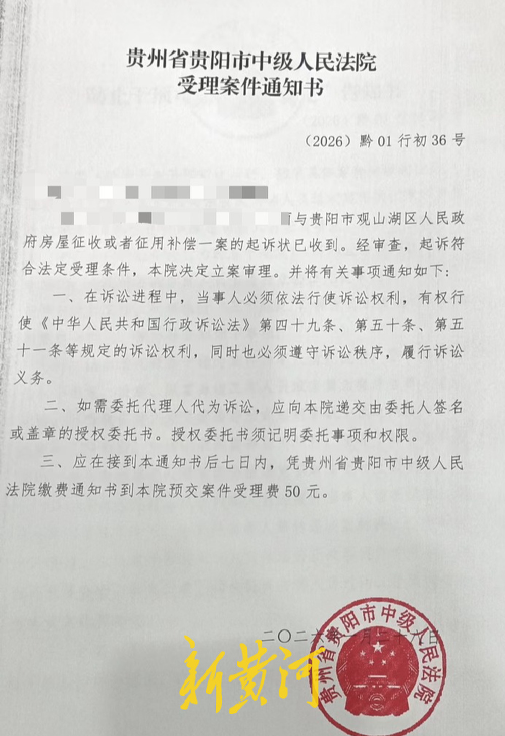 新黄河记者了解到,近日,部分征拆户已发起集体诉讼,起诉观山湖区征收安置中心解约行为违法。1月28日,贵阳市中级人民法院已正式受理该案。