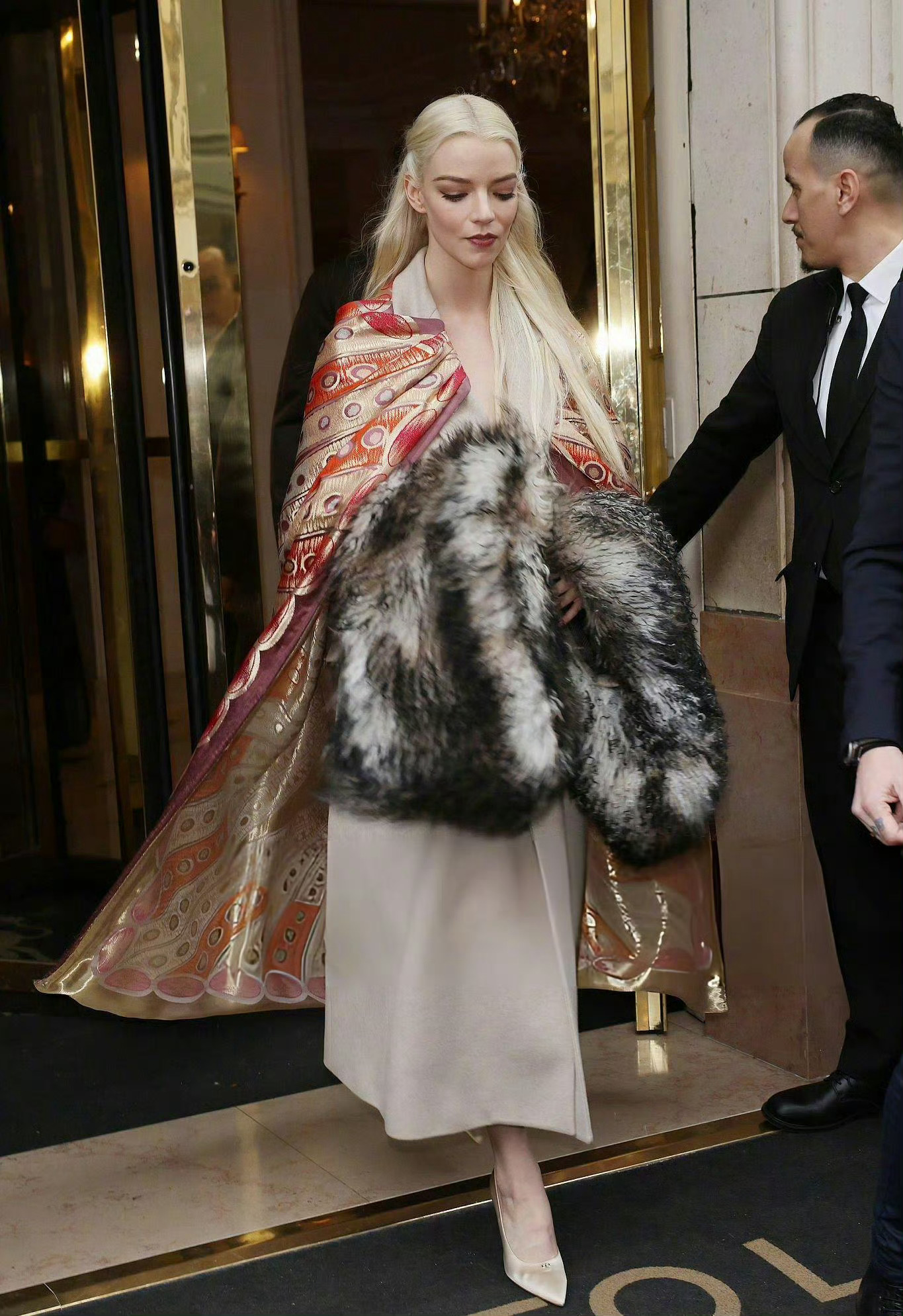 出席Dior 2026春夏高订系列发布秀的安雅·泰勒-乔伊,顺便为《ELLE》英国版2026年一月看拍了一组写真大片,摄影汤姆·戈达德摄。身穿的这件大衣是刚刚发布的Dior 2026 秋冬男装系列,大衣袖口点缀着黑白相间的纹理皮草。妆发造型非常漂亮,裸色唇妆、淡淡的腮红、修长的眼线——简约又高贵典雅!。 巴黎高定时装周