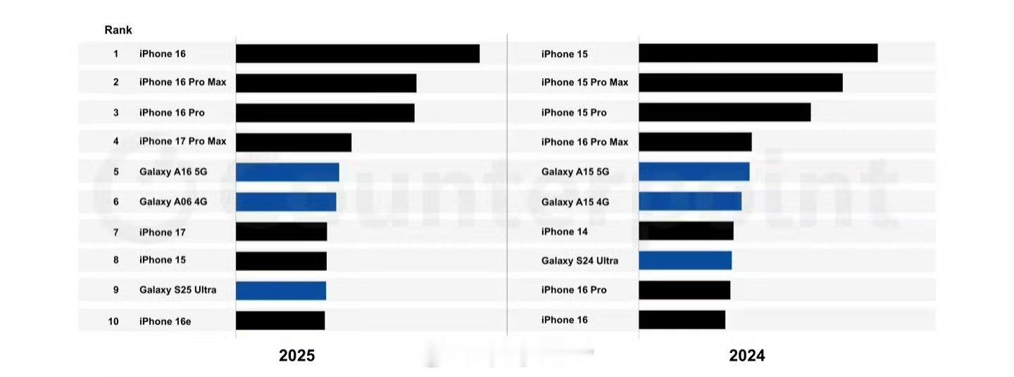 iPhone16成去年最畅销智能手机,看了榜单我都怀疑我眼花了,前10一个国产都没有,再仔细一看才知道是全球榜单,那懂的都懂了,你身边要是有留子朋友就知道绝对是清一色苹果。除了留子到底是谁在买iPhone16,要是再喜欢出去徒步那真是有福了,买一“赠一”永远挂着个充电宝。想沿途拍个风景照影像能力也打不过现在安卓,苹果视频能力确实很够看,但那也是加杯后的产品了。还有人说A18性能完全够用,那我问你,8Gen3,8至尊是不够用吗?你要用手机造导弹还是跑实验室大数据?最主要的是60Hz的屏幕是又臭又硬,如果今年17卖的最好那我肯定不多说什么,毕竟最主要的屏幕终于升级了,我不敢相信有人尝试过120Hz的屏幕还能再去用60Hz的手机。所以这个榜单还是占了国外总人口基数的优势,只能说国外基站建设确实没法和国内比,还有一列政策反倾销,老外吃不到好东西也没办法。