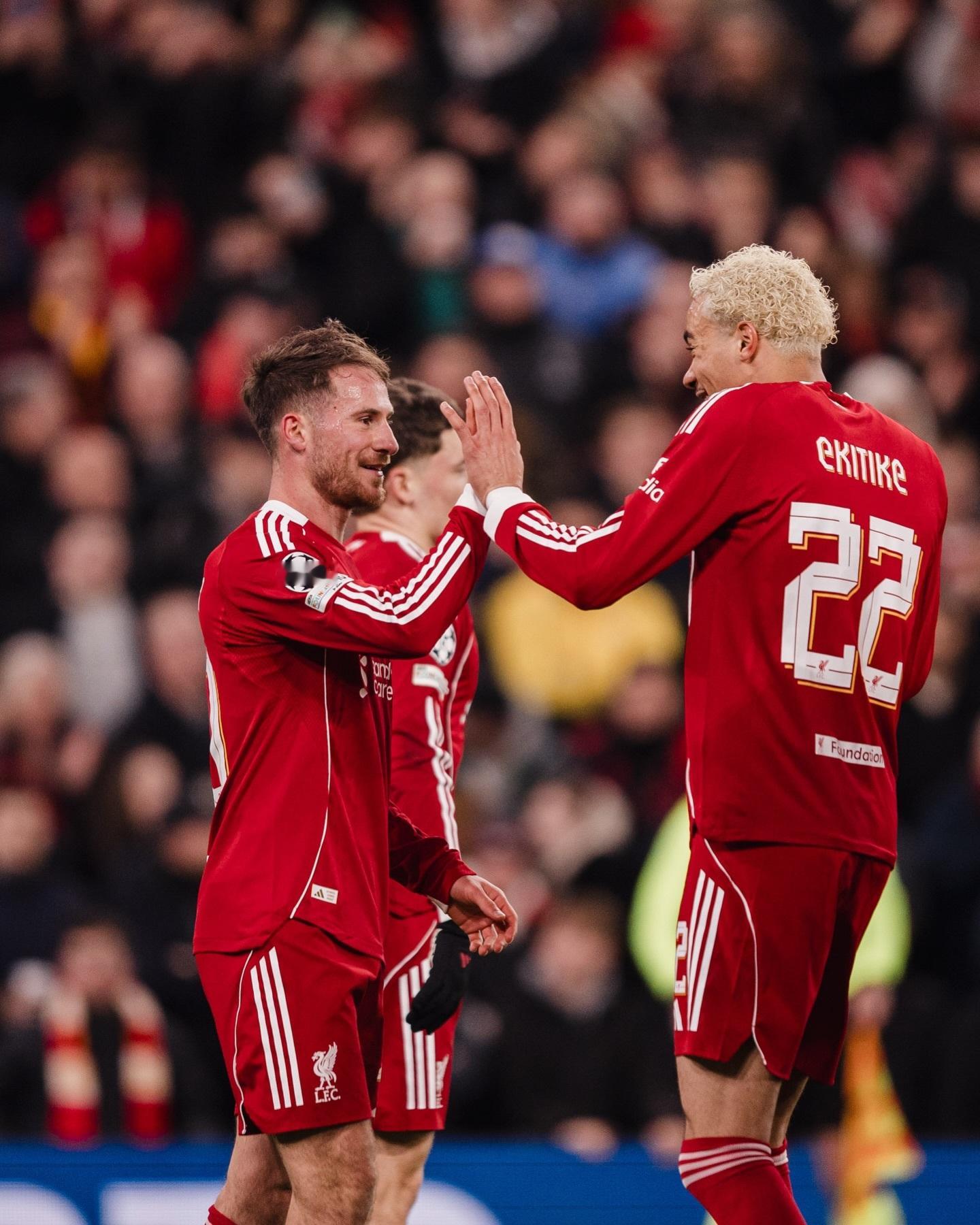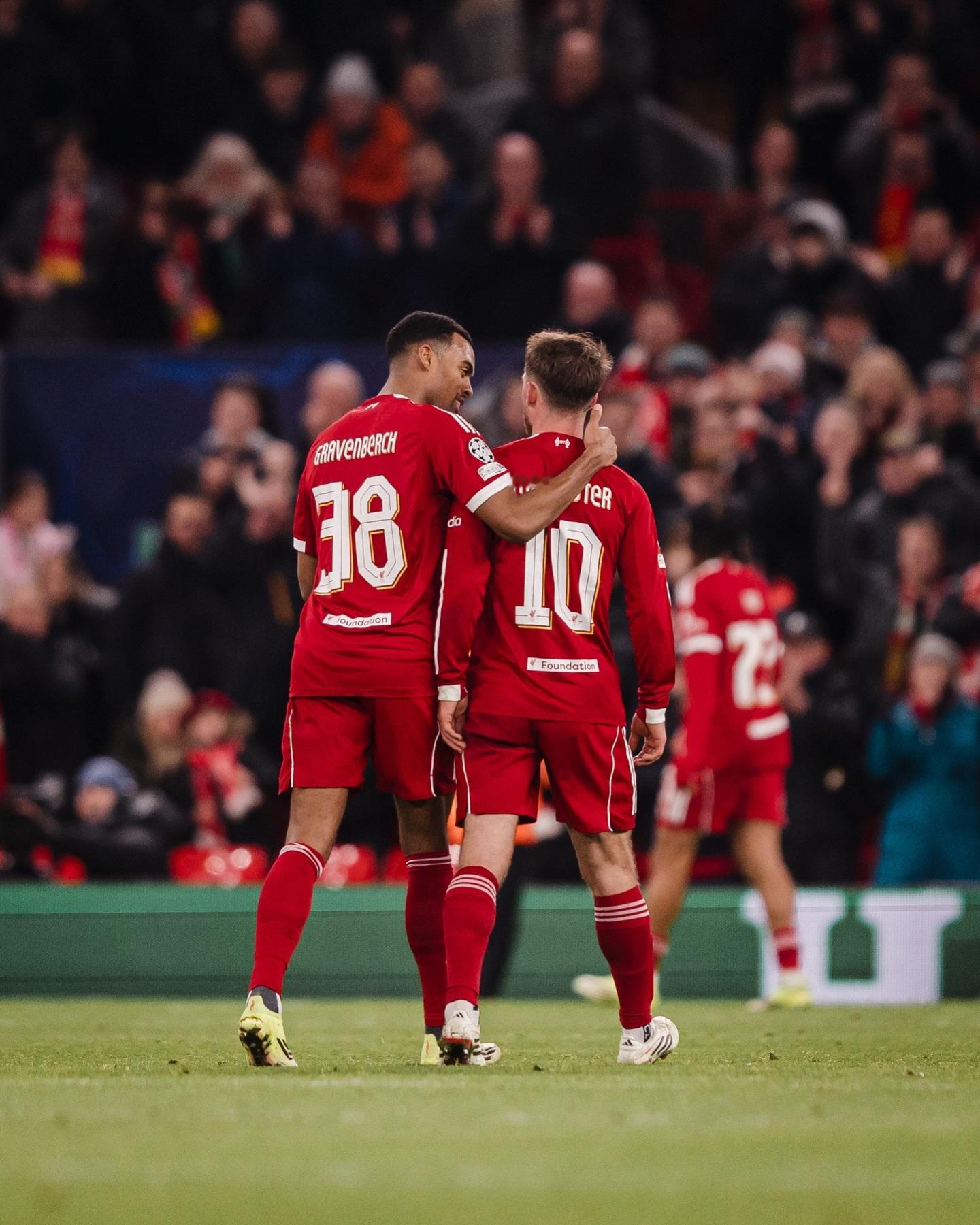 梅开二度,获得全场最佳的麦卡利斯特更新ins庆祝主场大胜晋级欧冠16强:进入欧冠16强🎯阿根廷球迷俱乐部利物浦6比0卡拉巴赫
