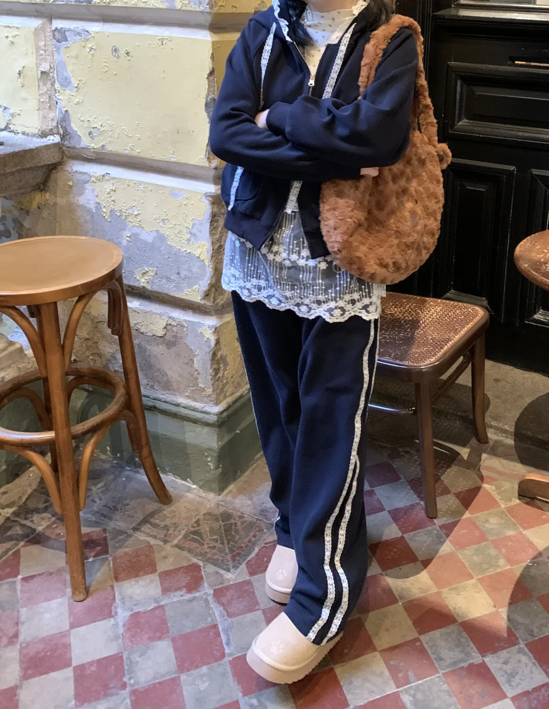 穿上蕾丝运动套装~轻松的少女感💕悠闲又有点小精致可爱诶![喝奶茶R]