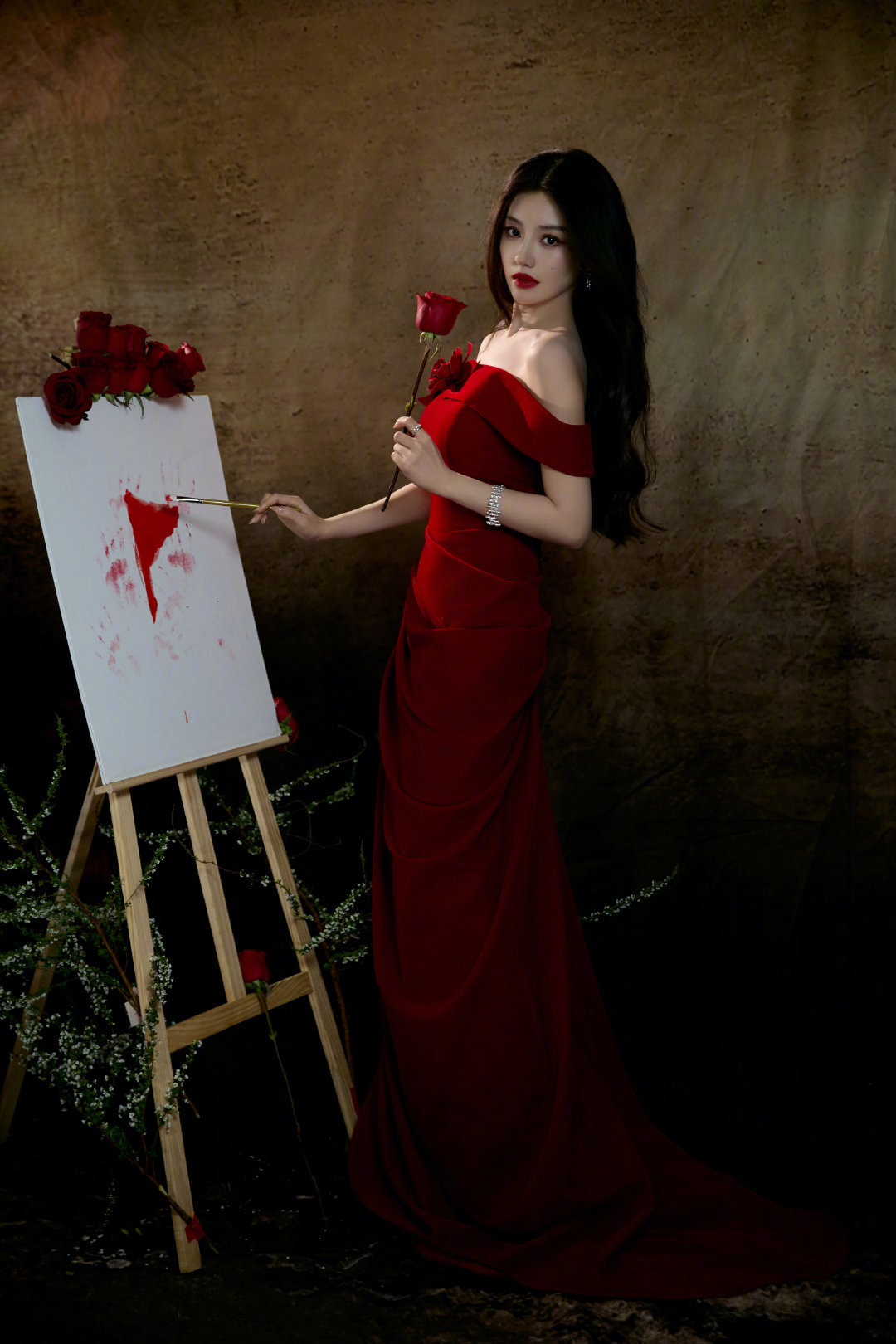 你是王鹤润那她是谁 这出发图完全就是复古油画女郎,一整个极致明艳诱惑感! 姐姐与红丝绒好配,又美又飒好美!大声告诉我,见到王鹤润要叫什么!