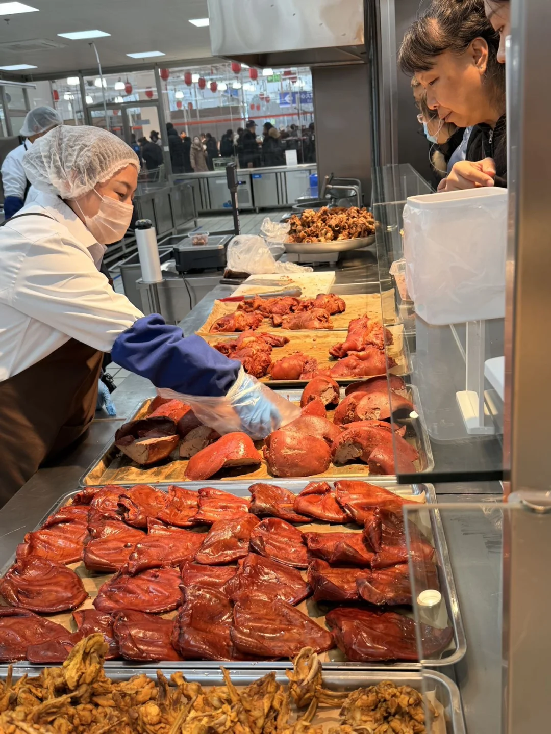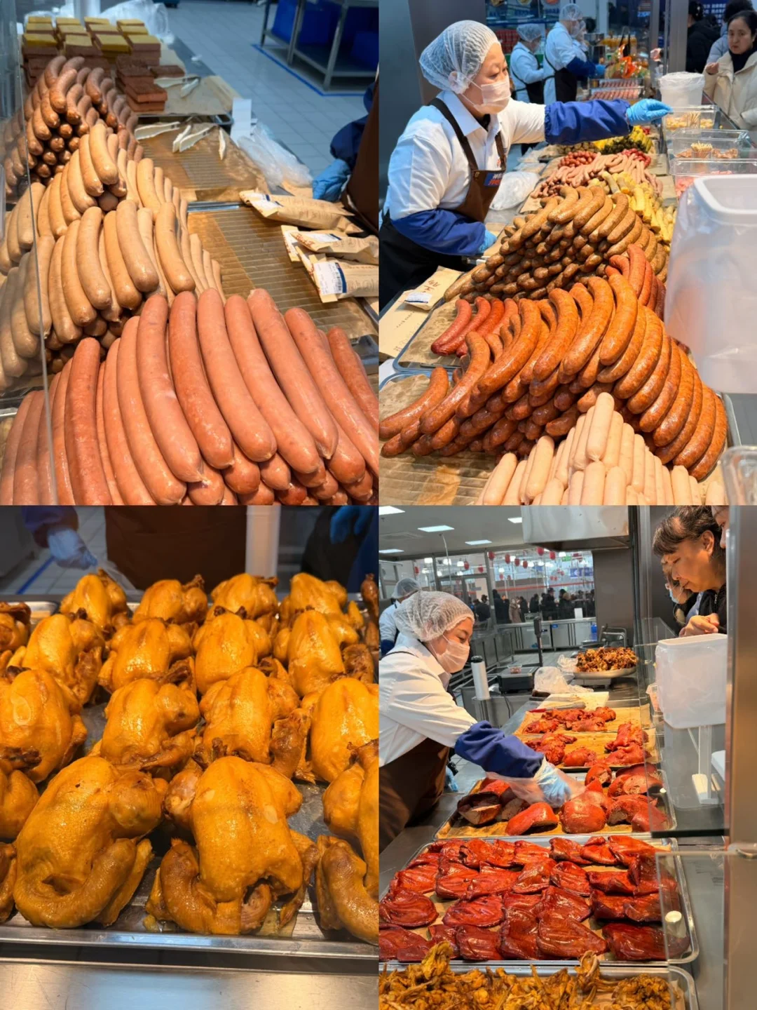 看到排队的现切肉!还有各种现灌现烤的香肠!刚出炉的瑞士卷!草莓蛋糕!阿姨们现包的大包子大饺子!!热腾腾的烧鸡烤鸭!闭眼拿都好吃!