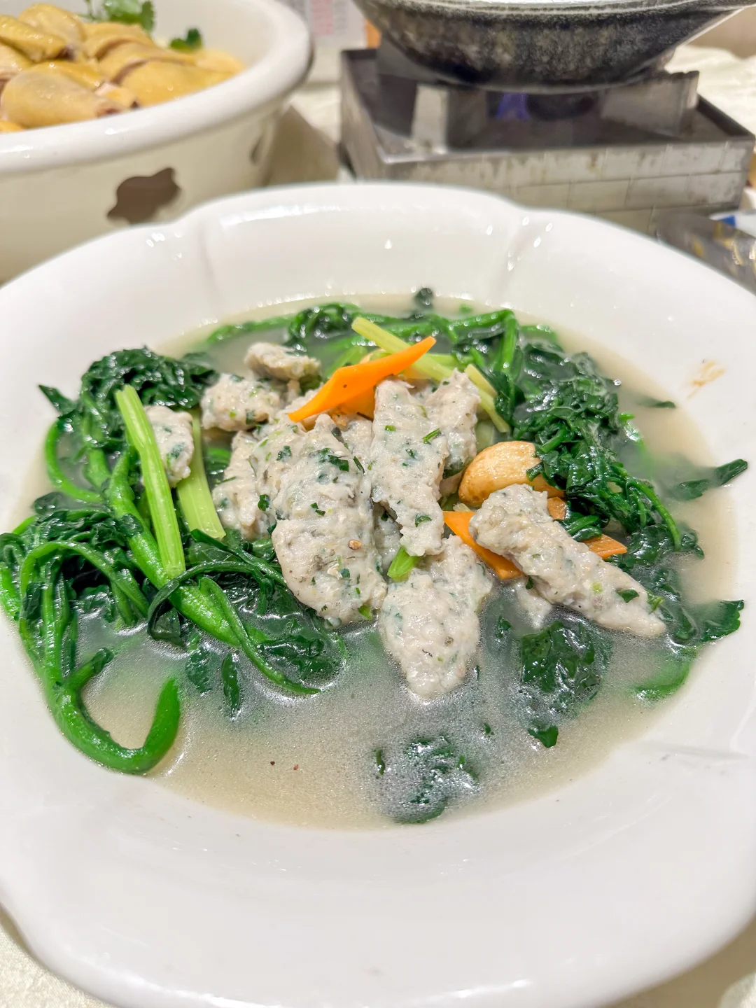 番禺人带路的老字号🥢本地人才懂的“十八22”‼️ 聚餐第.一顿永远选这里😭经典粤菜做得太地道啦~ ✔️手打鱼滑浸西洋菜 鱼滑软嫩嫩,吸满汤汁超鲜甜🤤 西洋菜清爽又降火🍃喝完一碗忍不住再续! ✔️酸笋田螺焖鹅掌亦 鹅掌软烂入味,一抿就脱骨🦢 酸笋+田螺提鲜又开胃🐚酱汁捞饭直接光盘!! ✔️茶皇焗明虾 虾肉弹牙又饱满🍤茶香完全渗进去了🍃 连壳都忍不住嗦一遍~ 📍朋友吃完都说会再来👬番禺必吃粤菜藏不住啦!