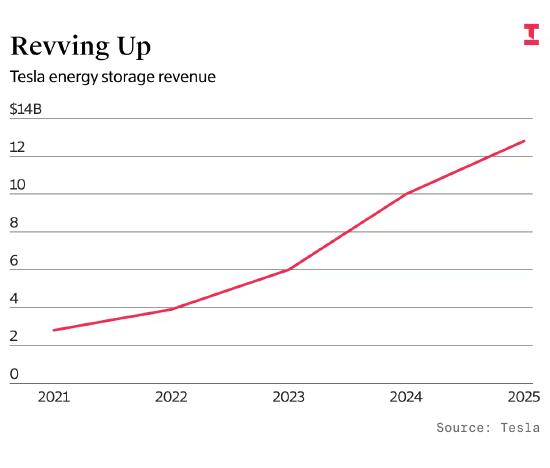 但财报数据显示,特斯拉2025年营收同比下降3%,这是公司自公布财务数据以来首次出现年度营收下滑。若非储能电池业务为电网、人工智能数据中心和家庭供电领域贡献了36亿美元利润,特斯拉2025年38亿美元的总利润几乎将化为乌有。