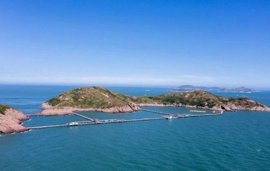 据了解,舟山岱山东寨岛大黄鱼围栏养殖基地坐落于风光旖旎的海岛之上,专注于深远海围栏生态鱼类养殖。